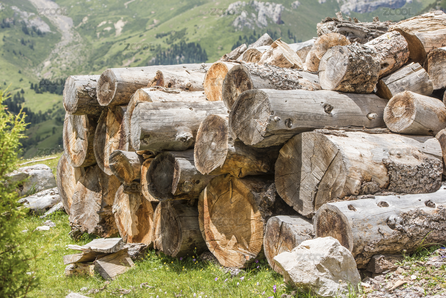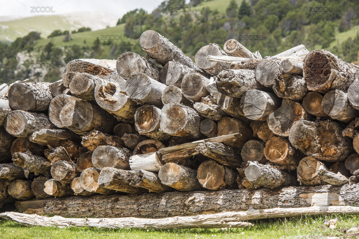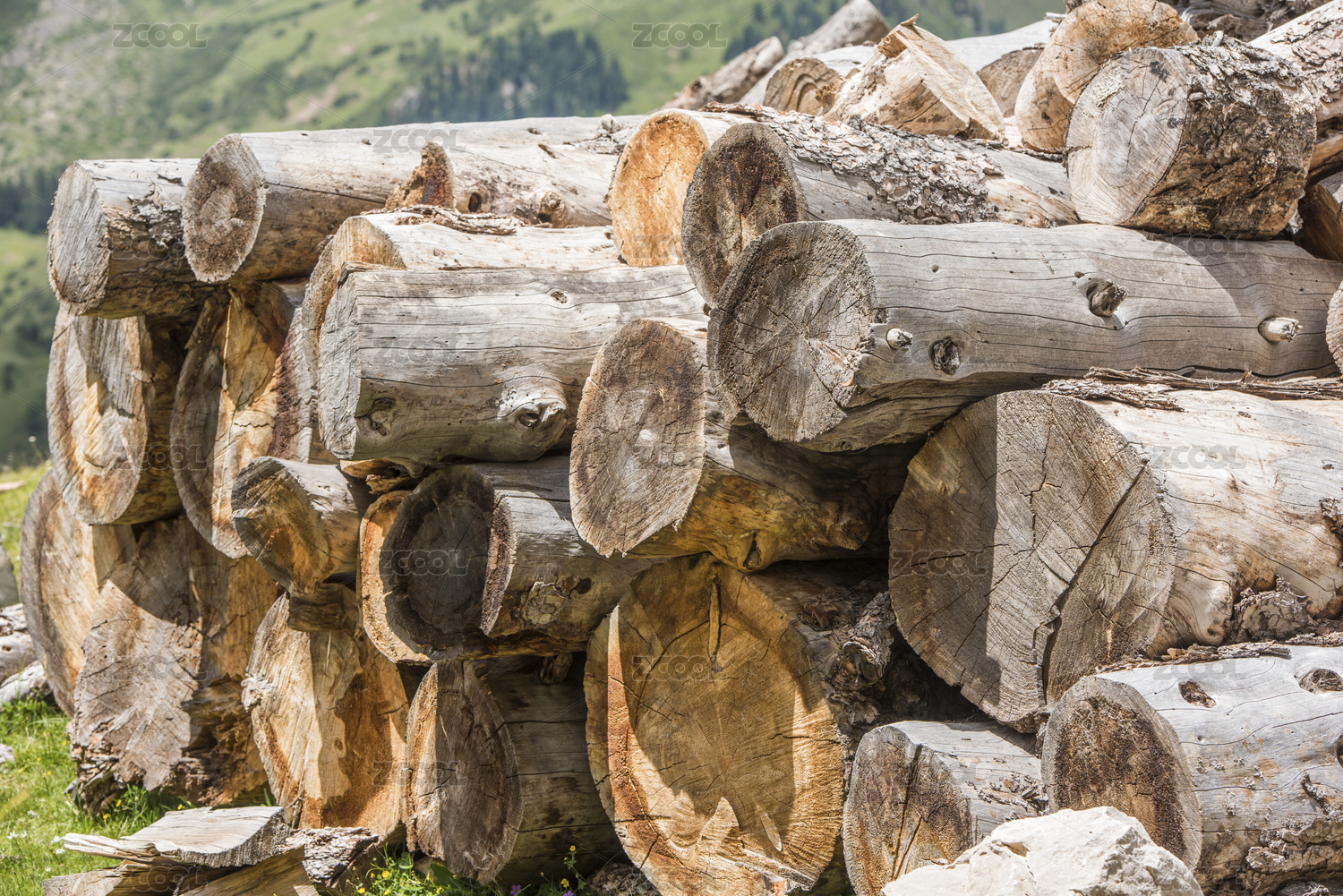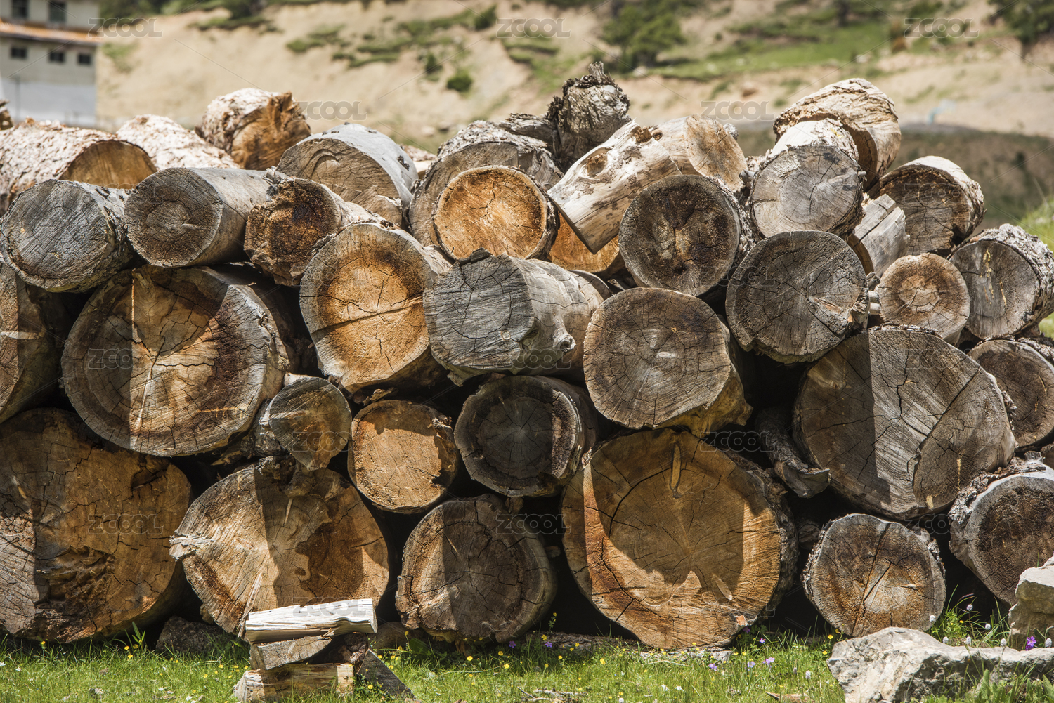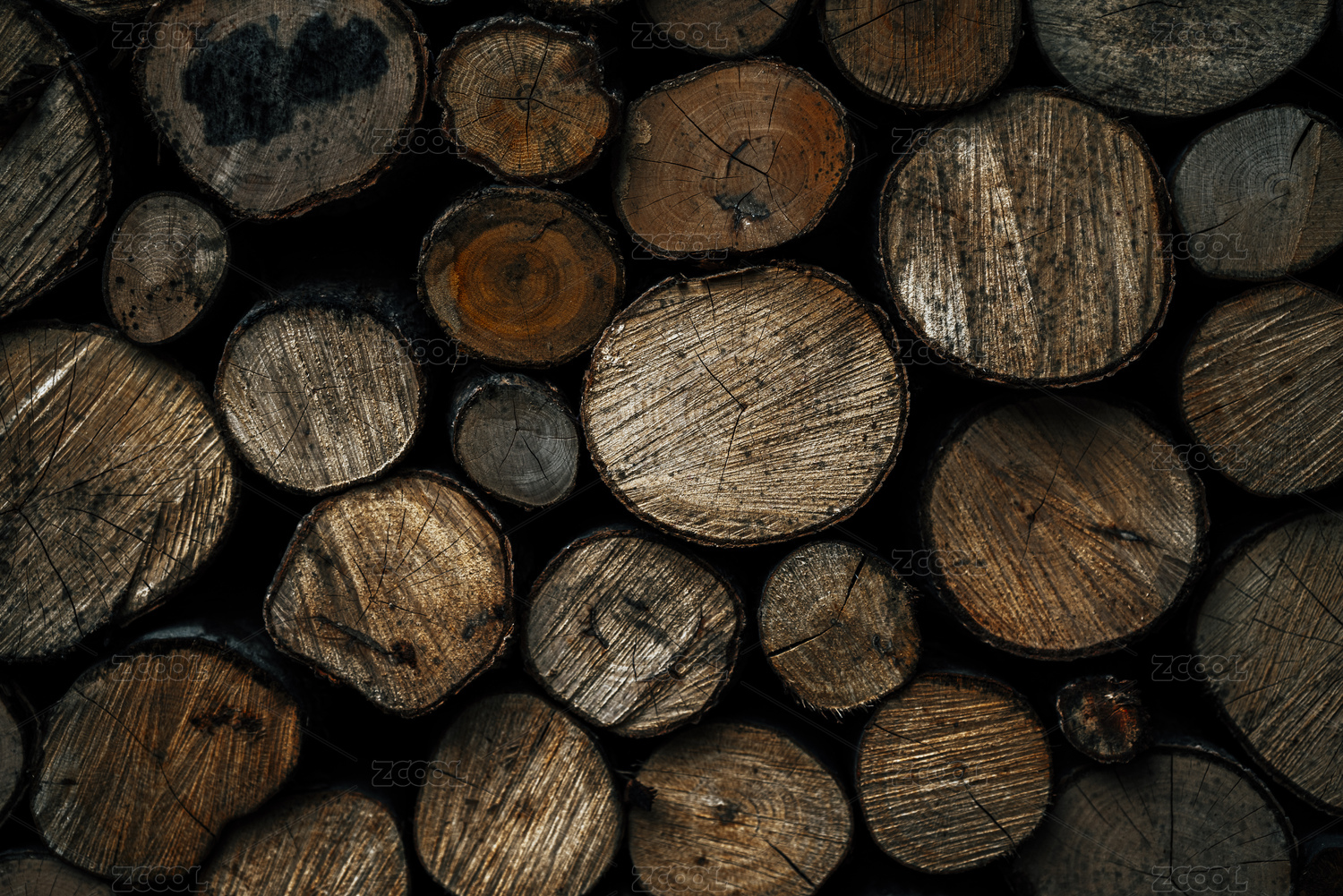 園林花園里用原木和鵝卵石堆砌組成的步道