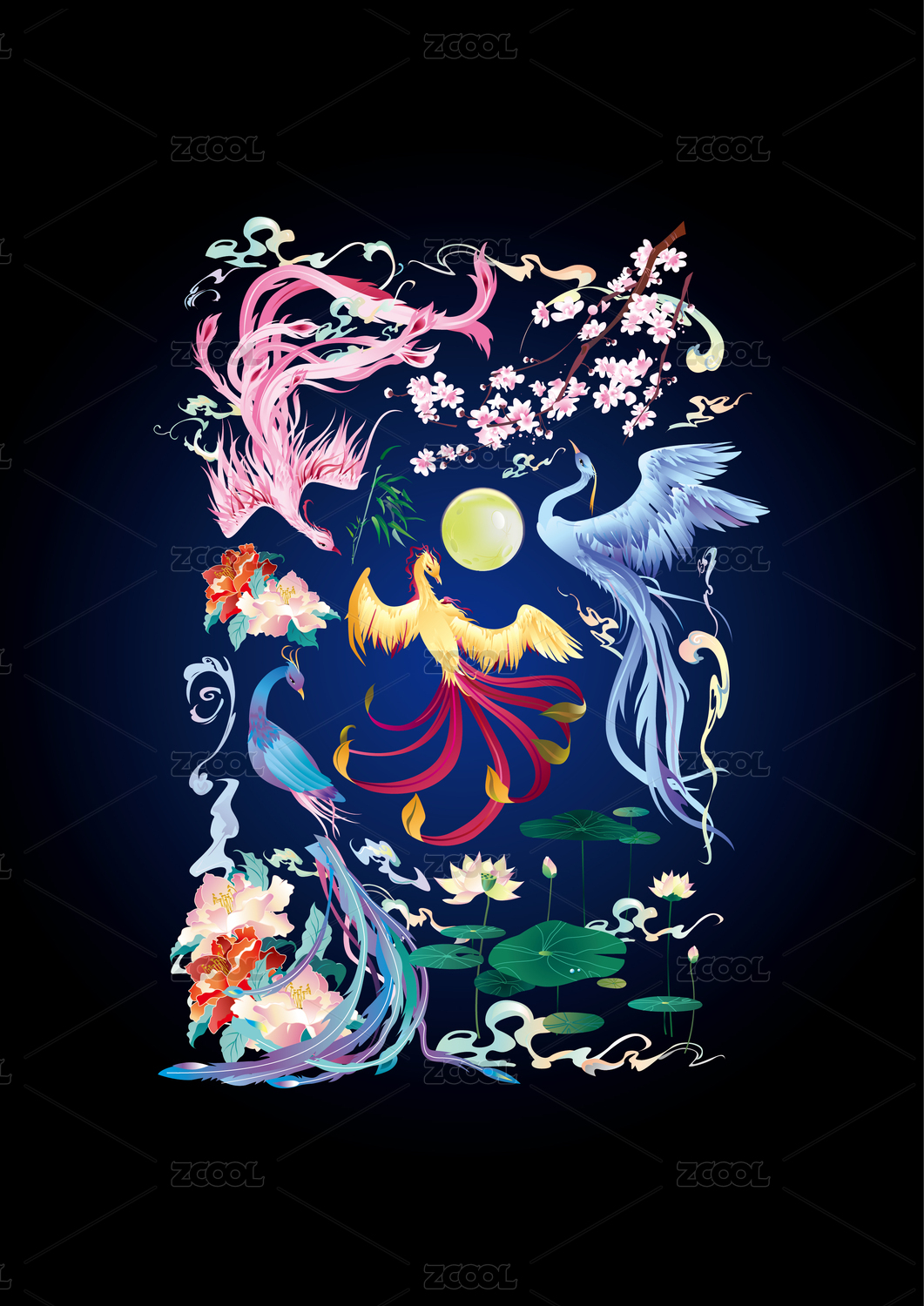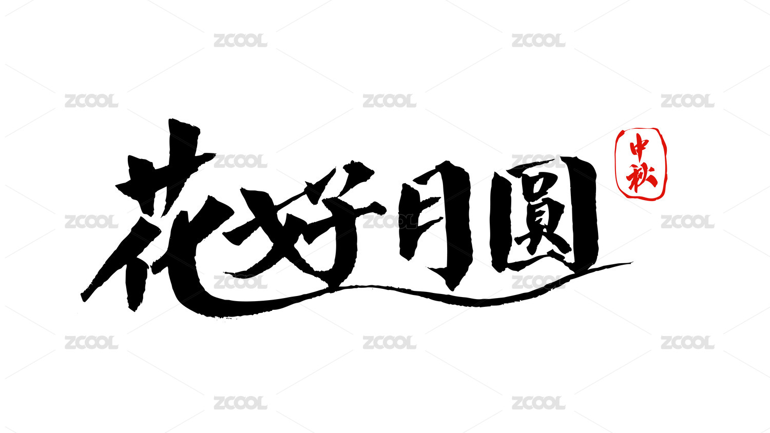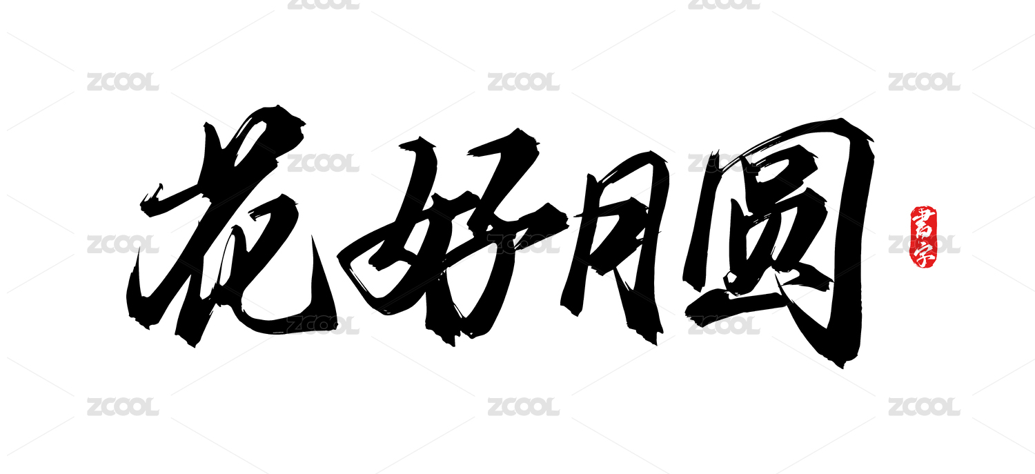 花好月圓矢量書法手寫毛筆字