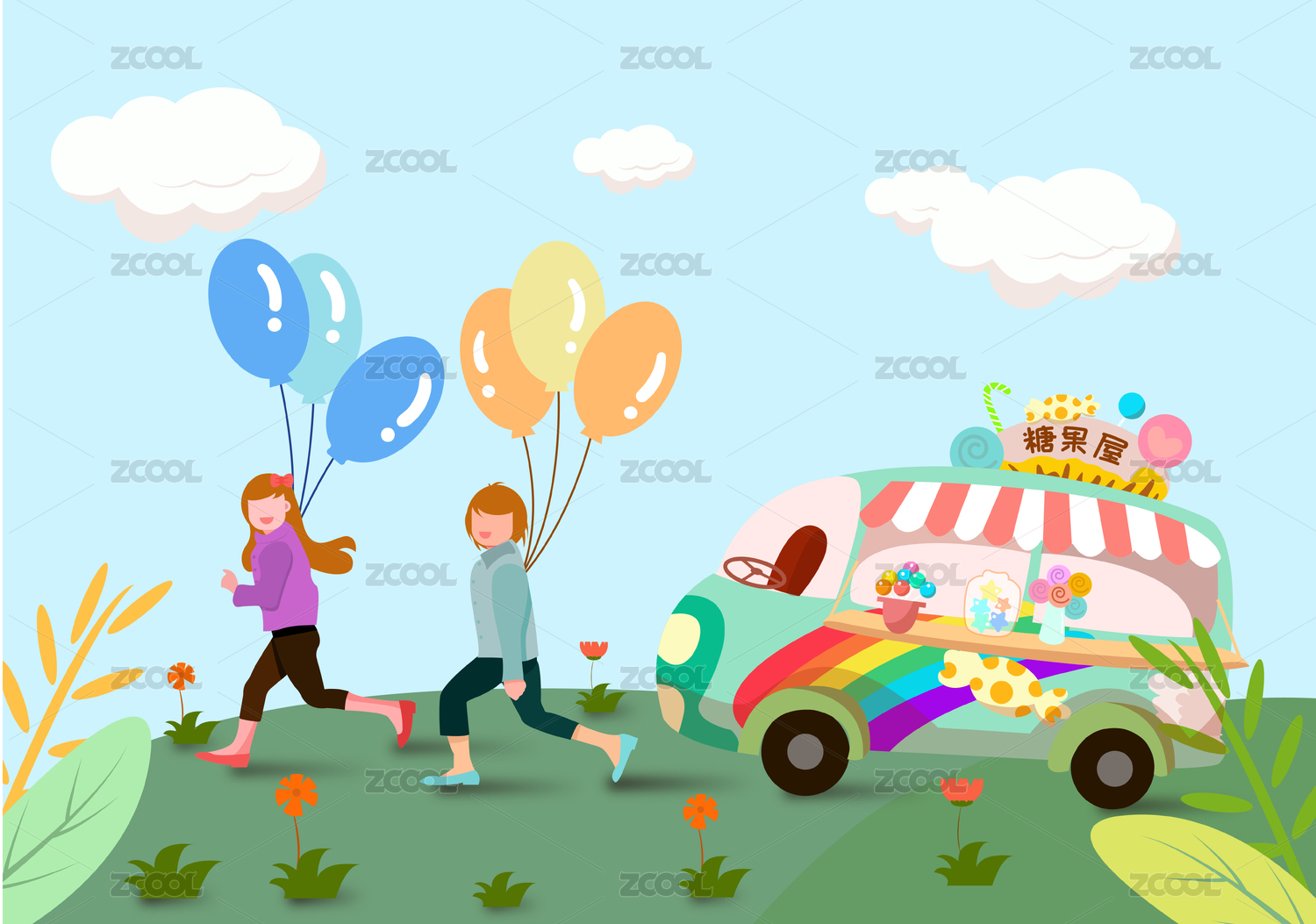 可愛卡通彩色手繪糖果圖案
