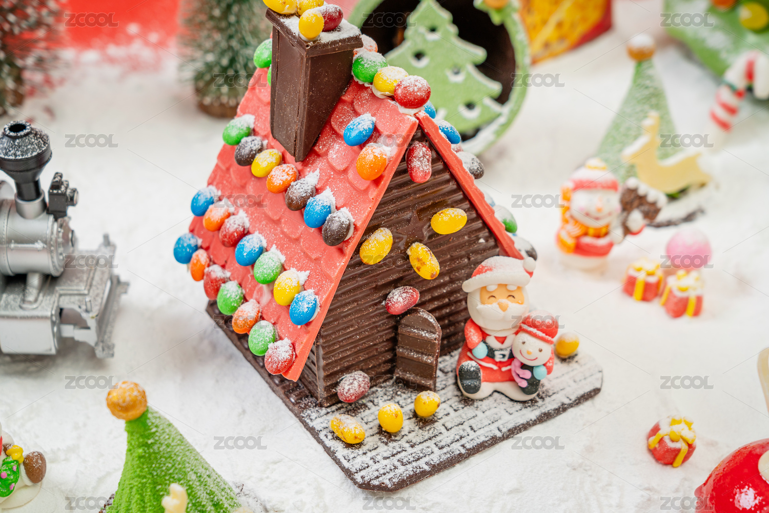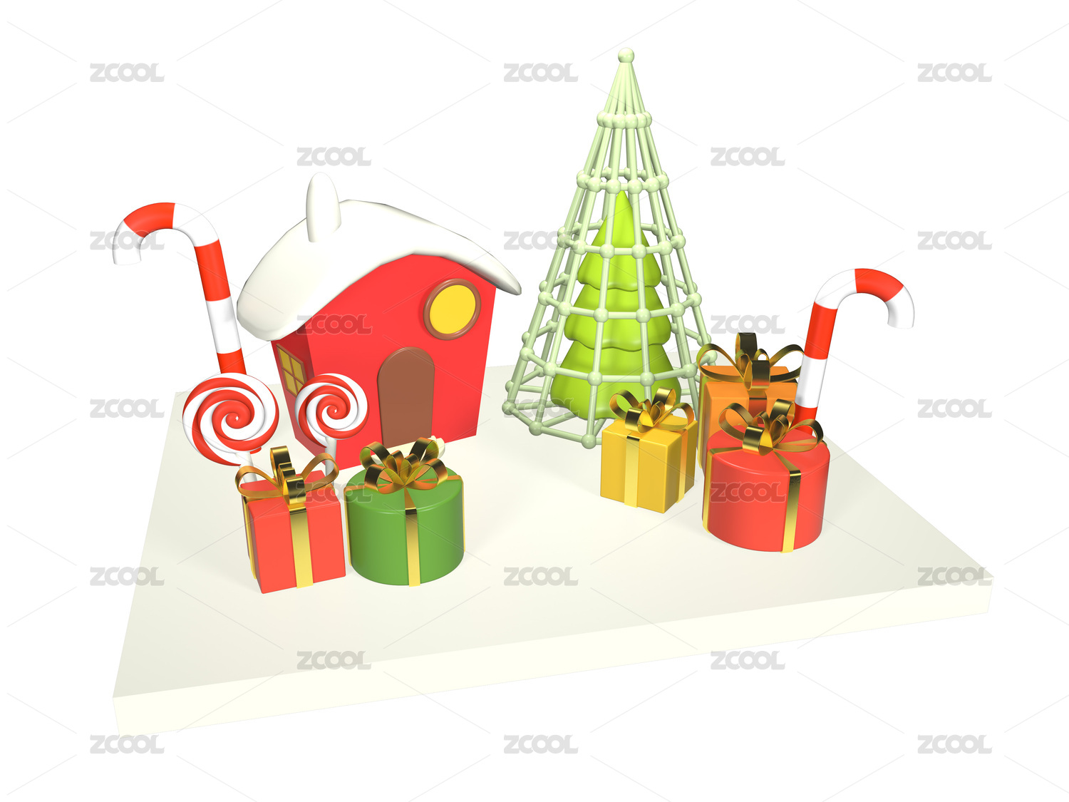 圣誕節(jié)糖果屋子圣誕樹禮物盒主題場景