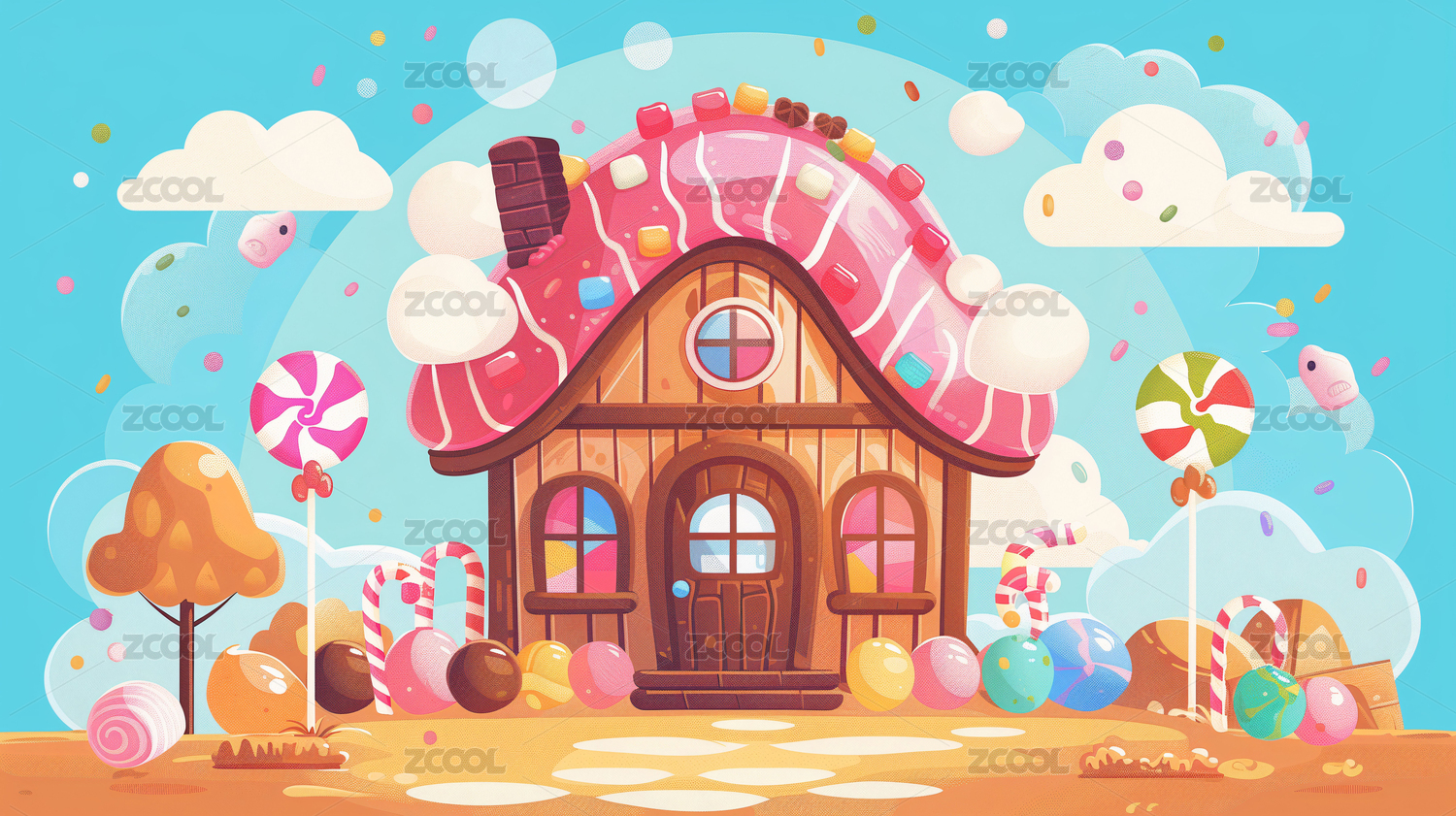 巧克力糖果屋卡通插畫
