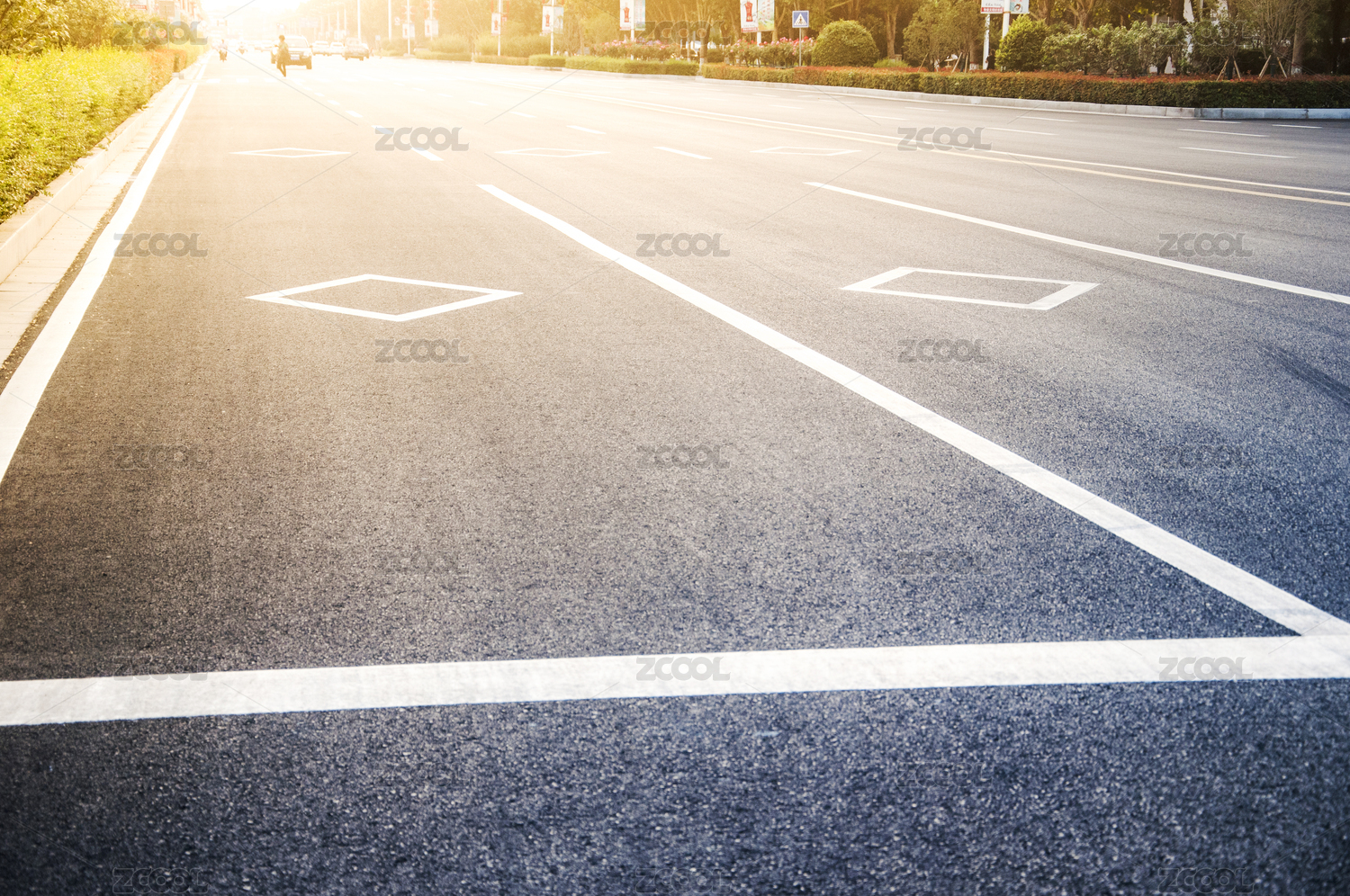 柏油路路口的車道和停止線