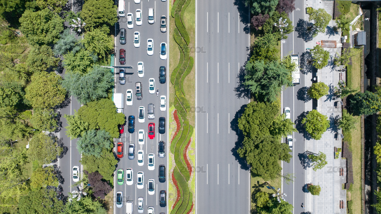 布滿綠化的城市車道