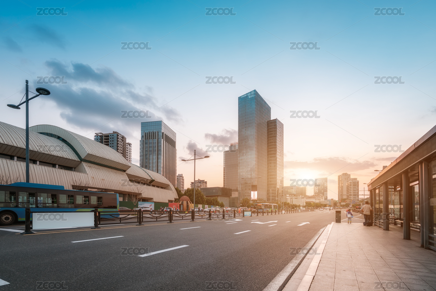 下午無車道路與摩登城市