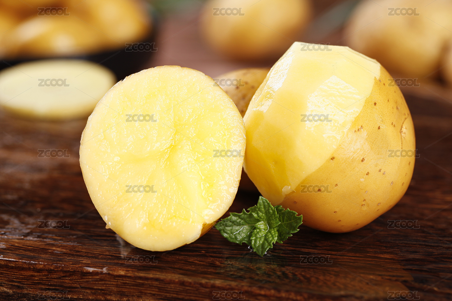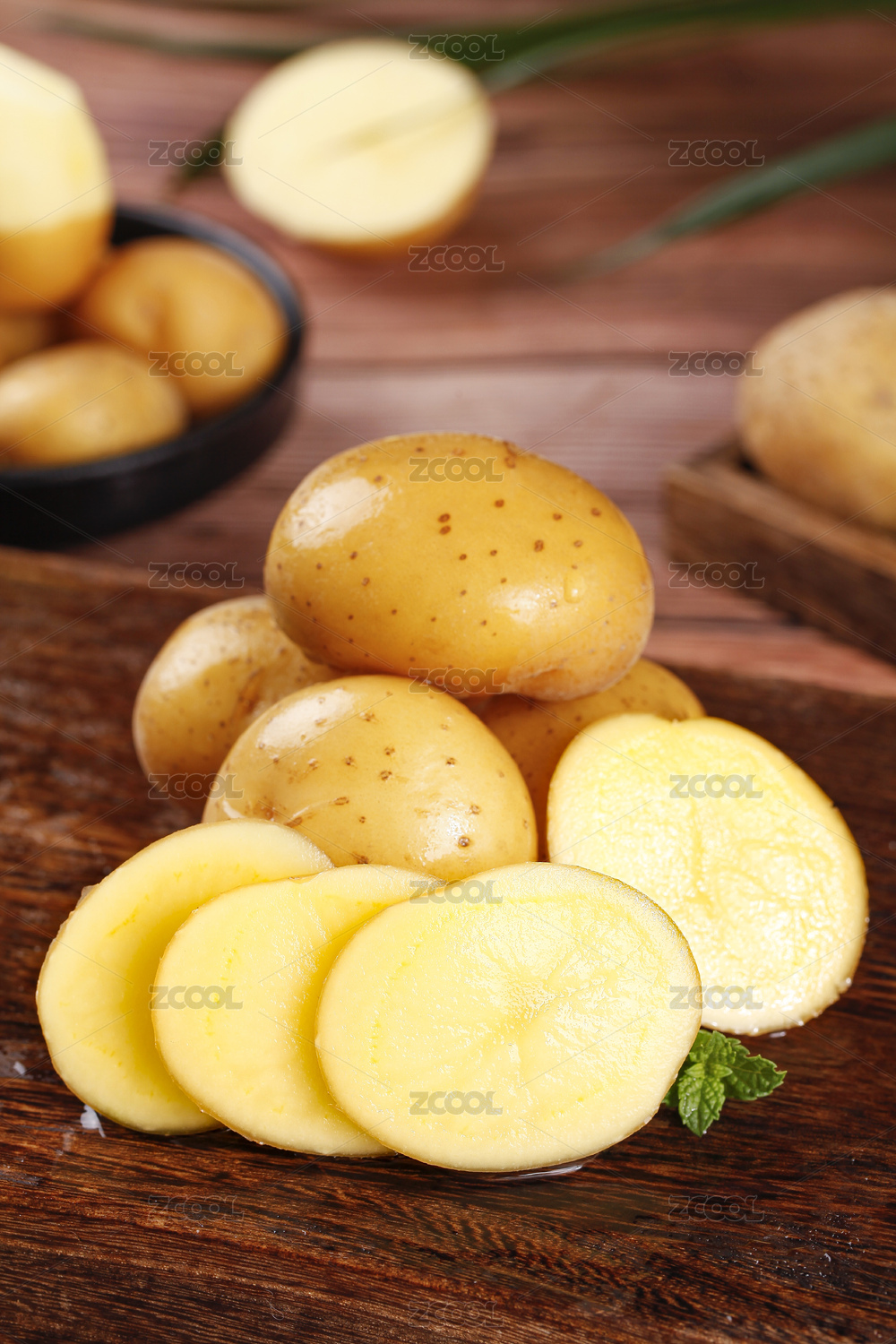 深底上放著小土豆和削皮的洋芋
