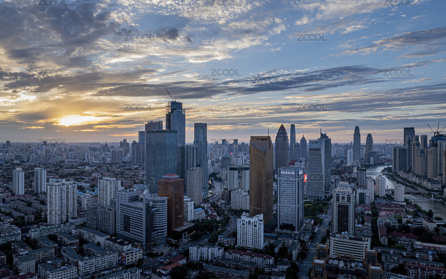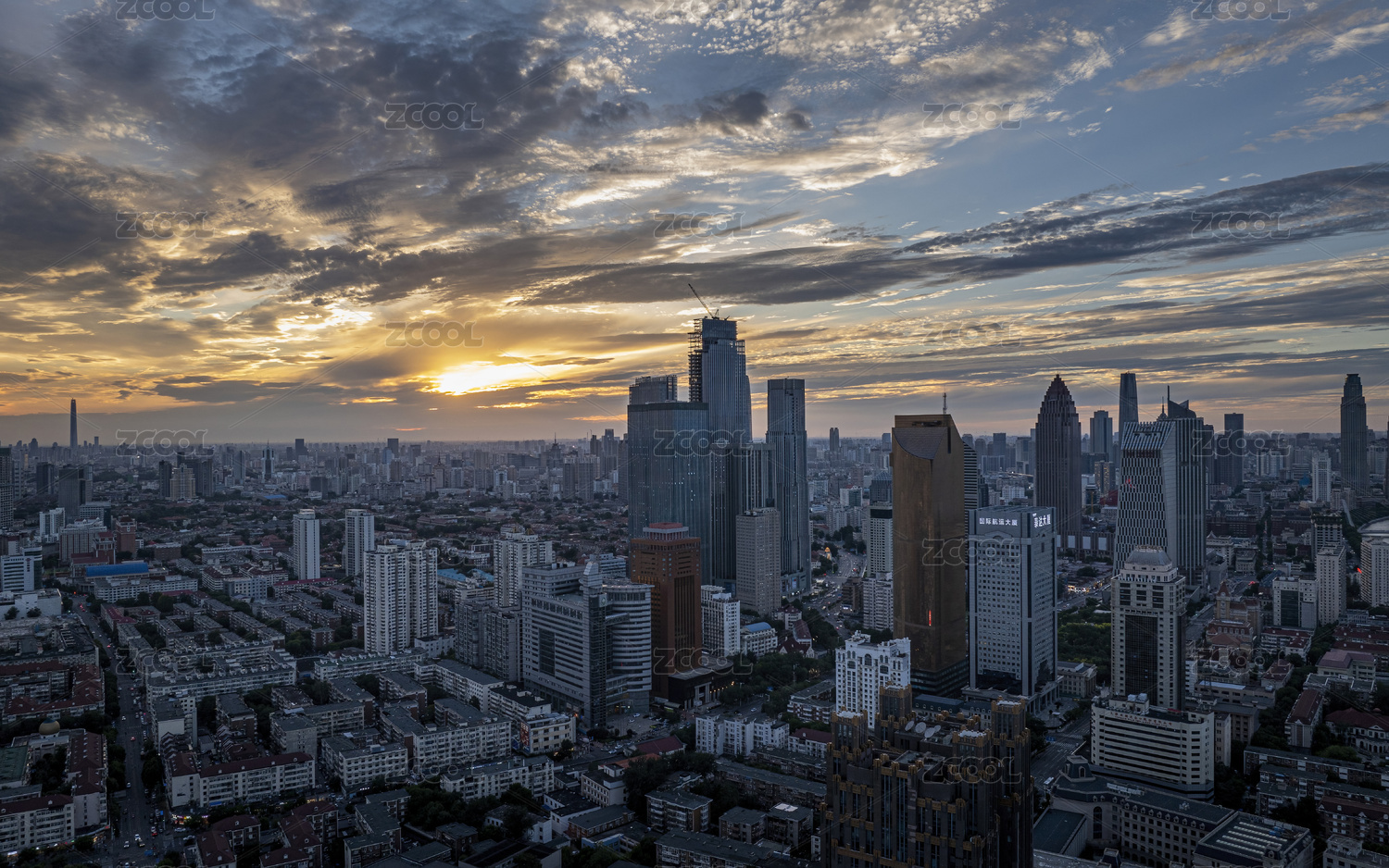 天津小白樓日落航拍