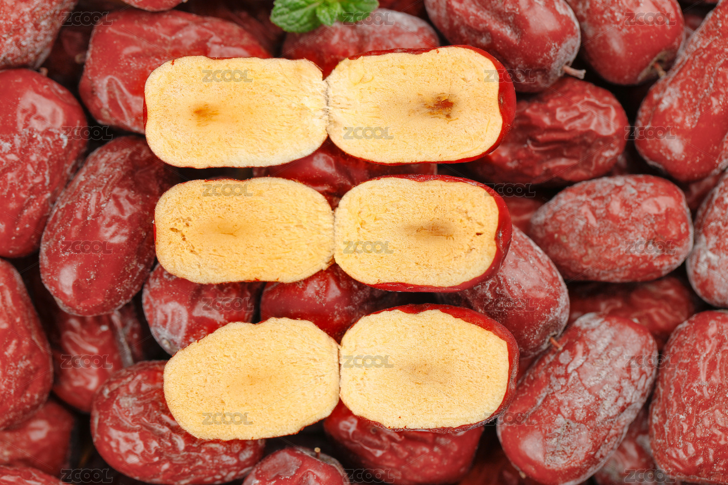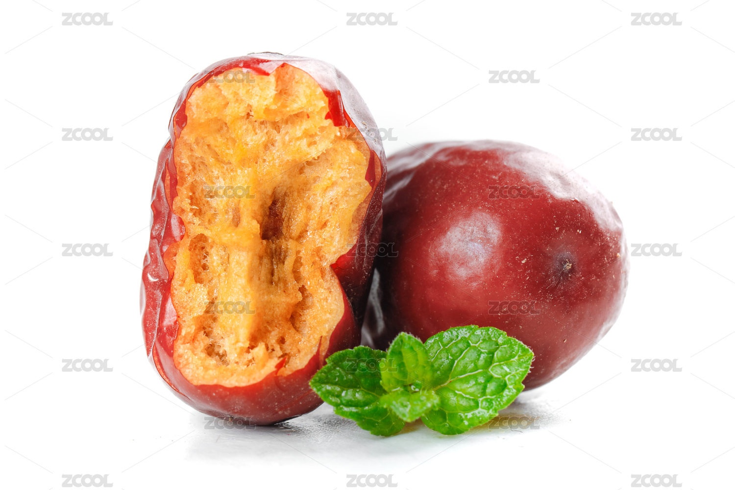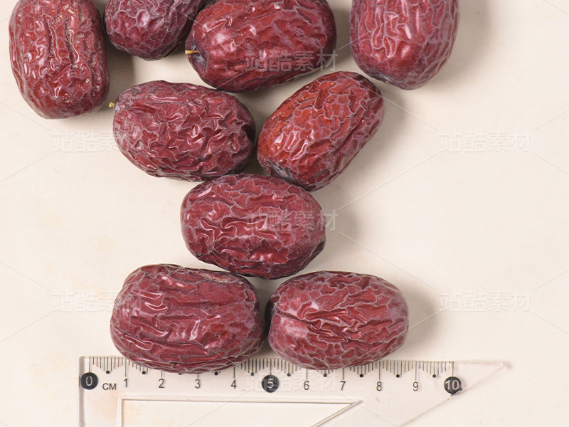 白底上放著一顆灰棗和一顆咬過新疆若羌灰棗