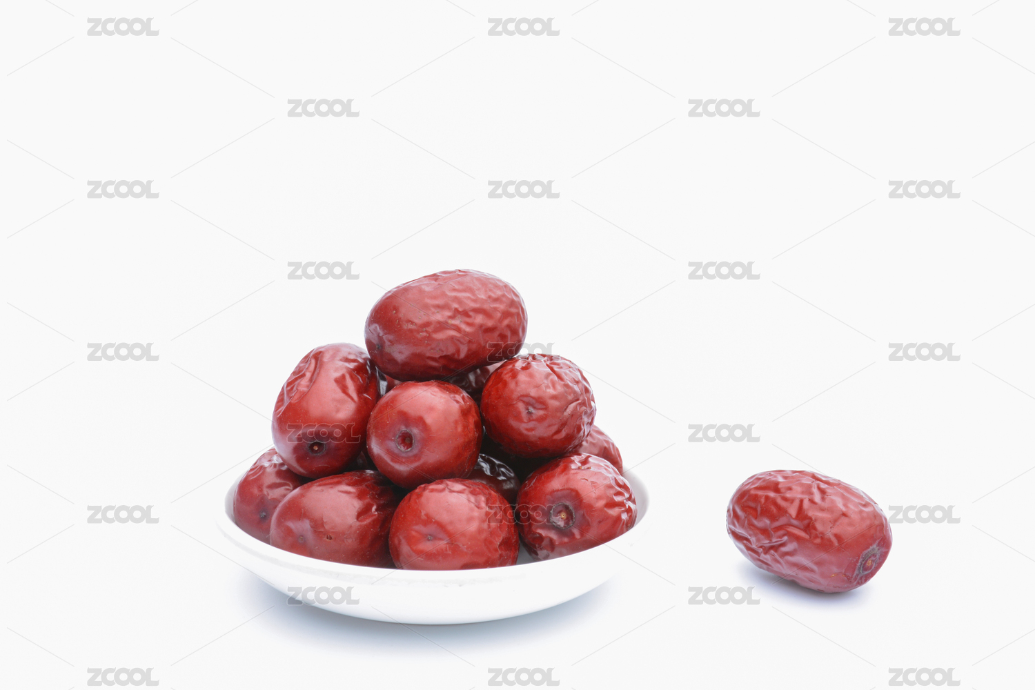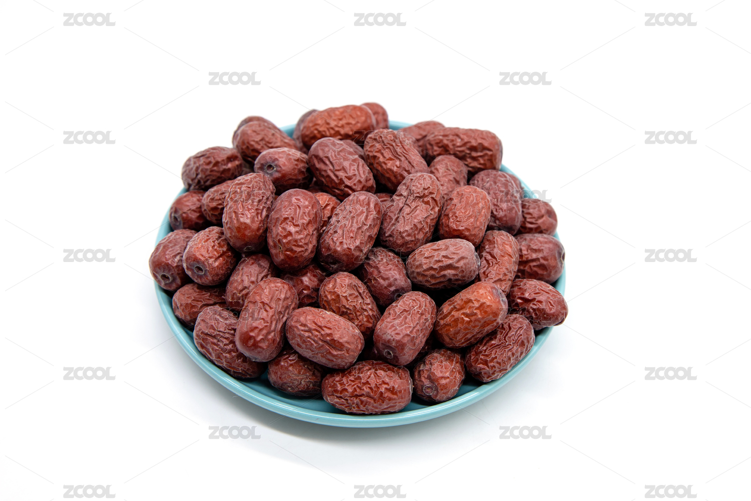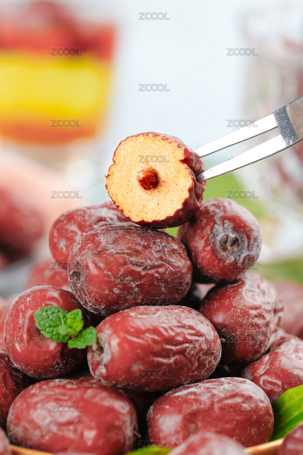 一盤新疆若羌灰棗和叉子上叉著半邊灰棗