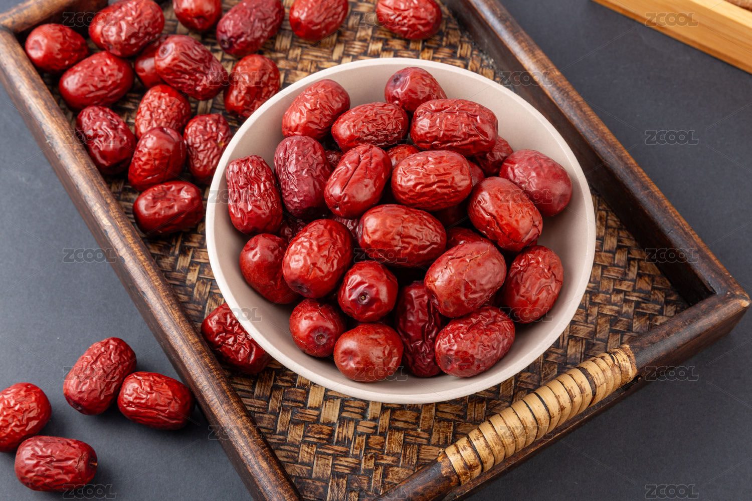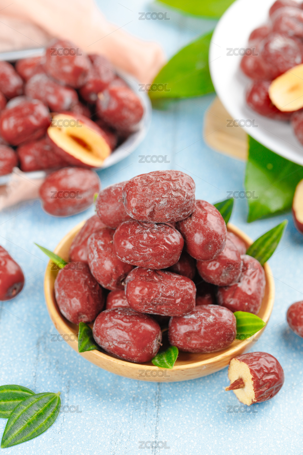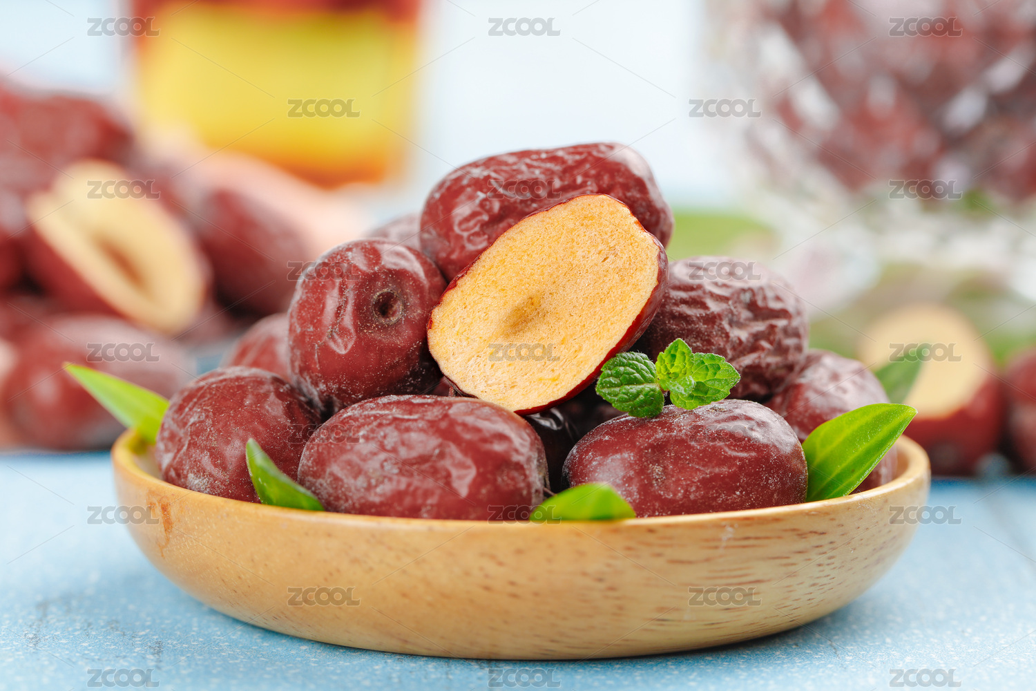 一盤新疆若羌灰棗和叉子上叉著半邊灰棗