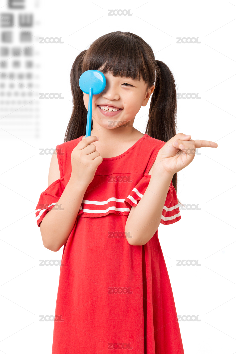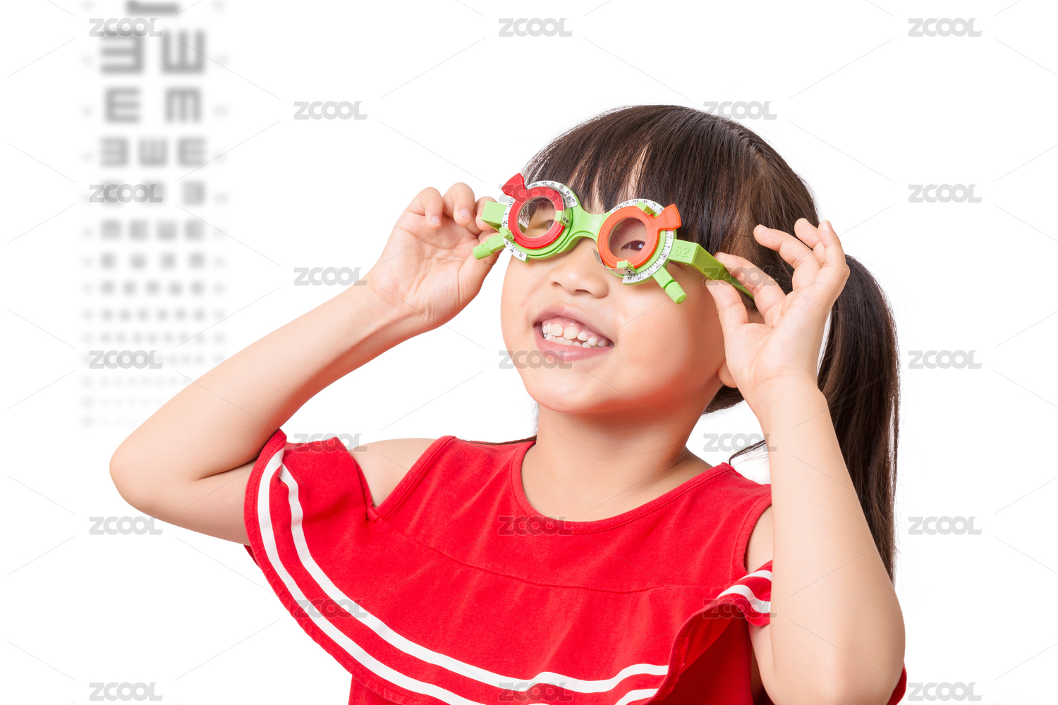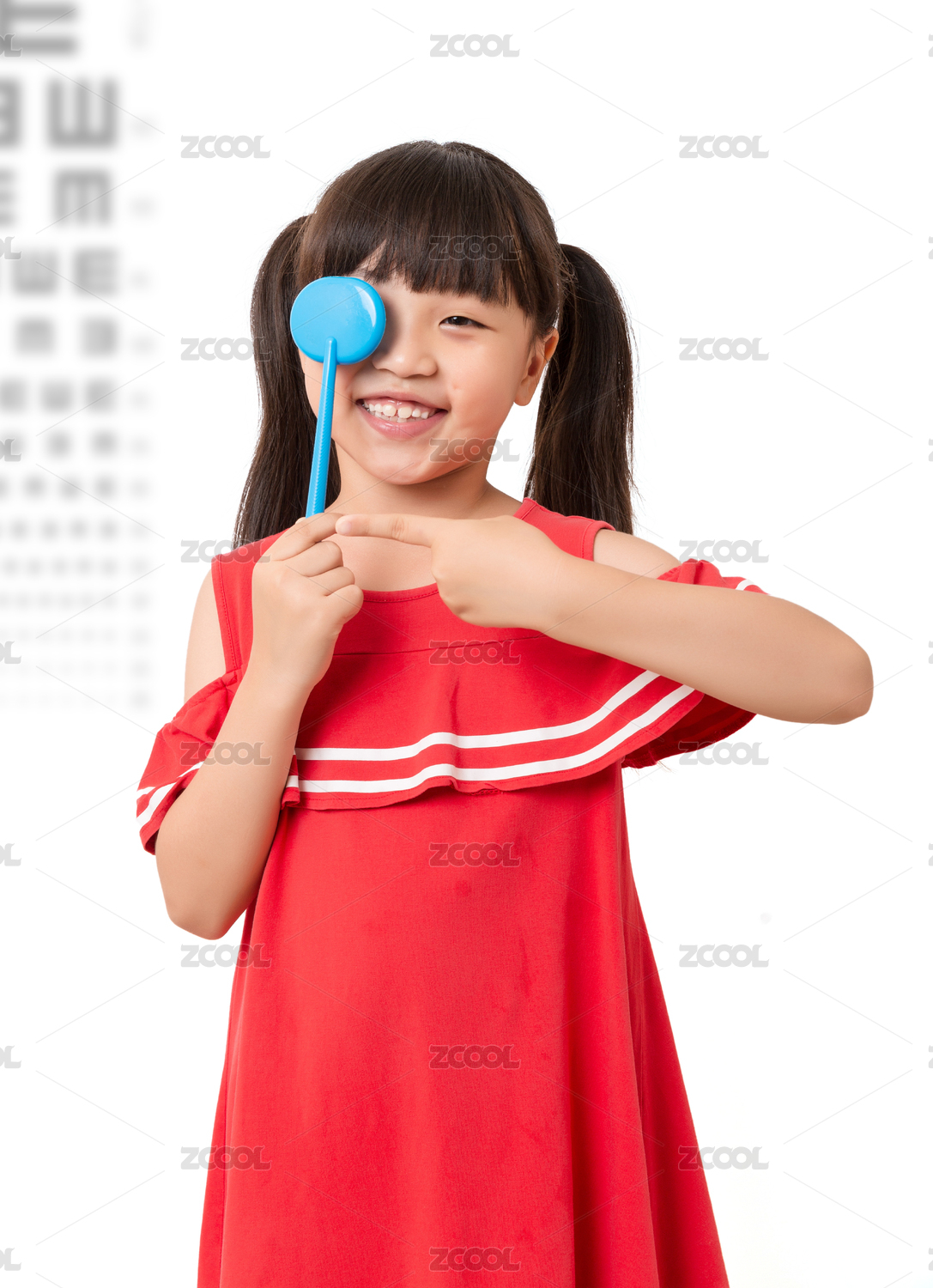 近視的亞洲小學(xué)女生測視力配眼鏡
