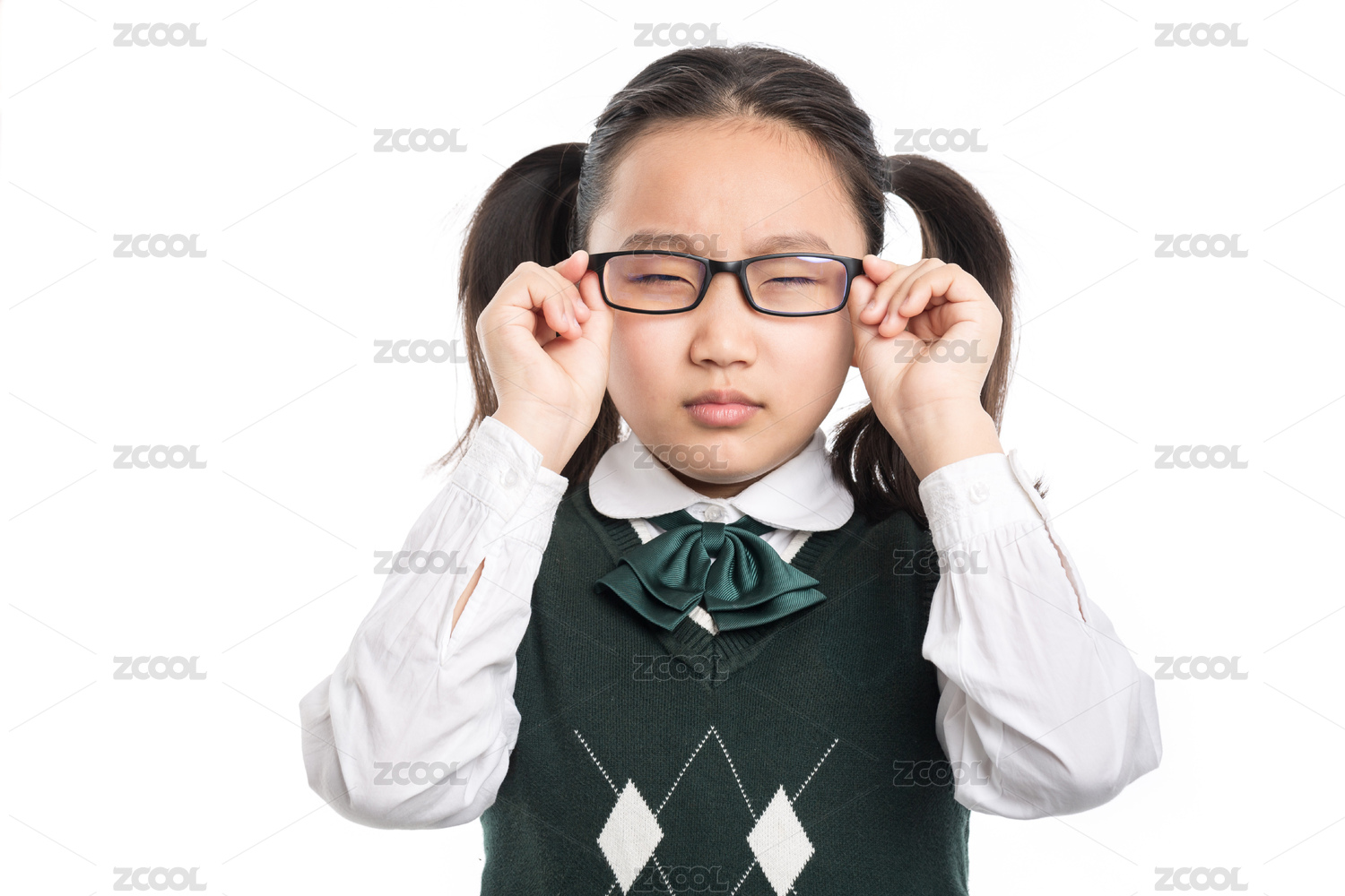 近視的小學(xué)生瞇著眼帶眼鏡