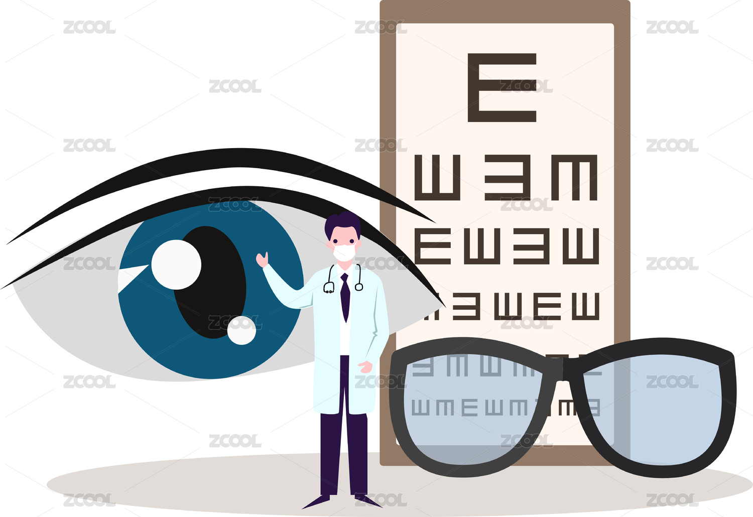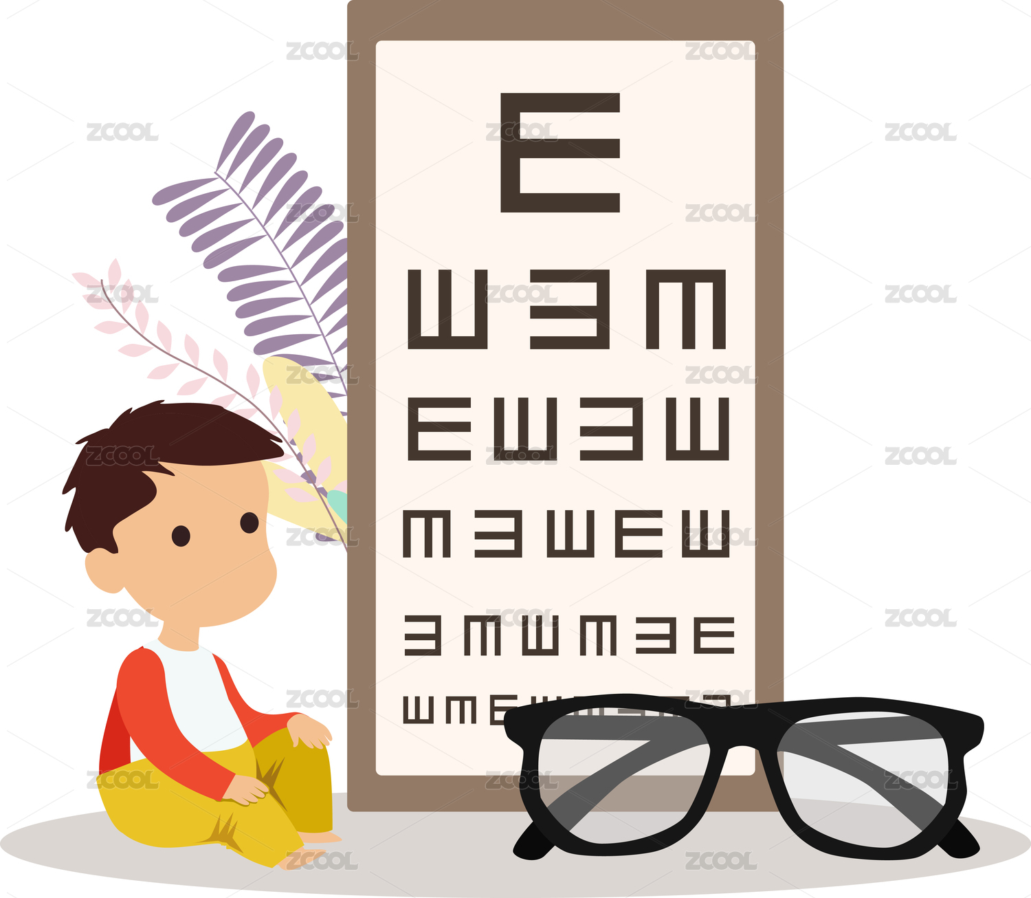 兒童青少年近視眼保護眼睛概念插畫