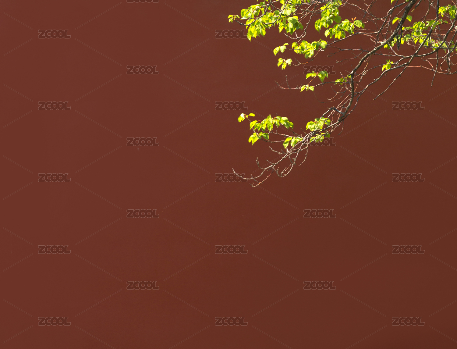 故宮紅色磚墻上映襯著新長出的新枝芽