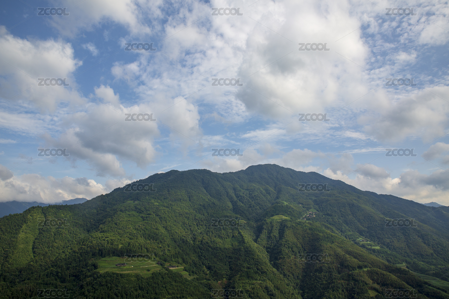 在藍(lán)天白云映襯下盛開的金黃色油菜花