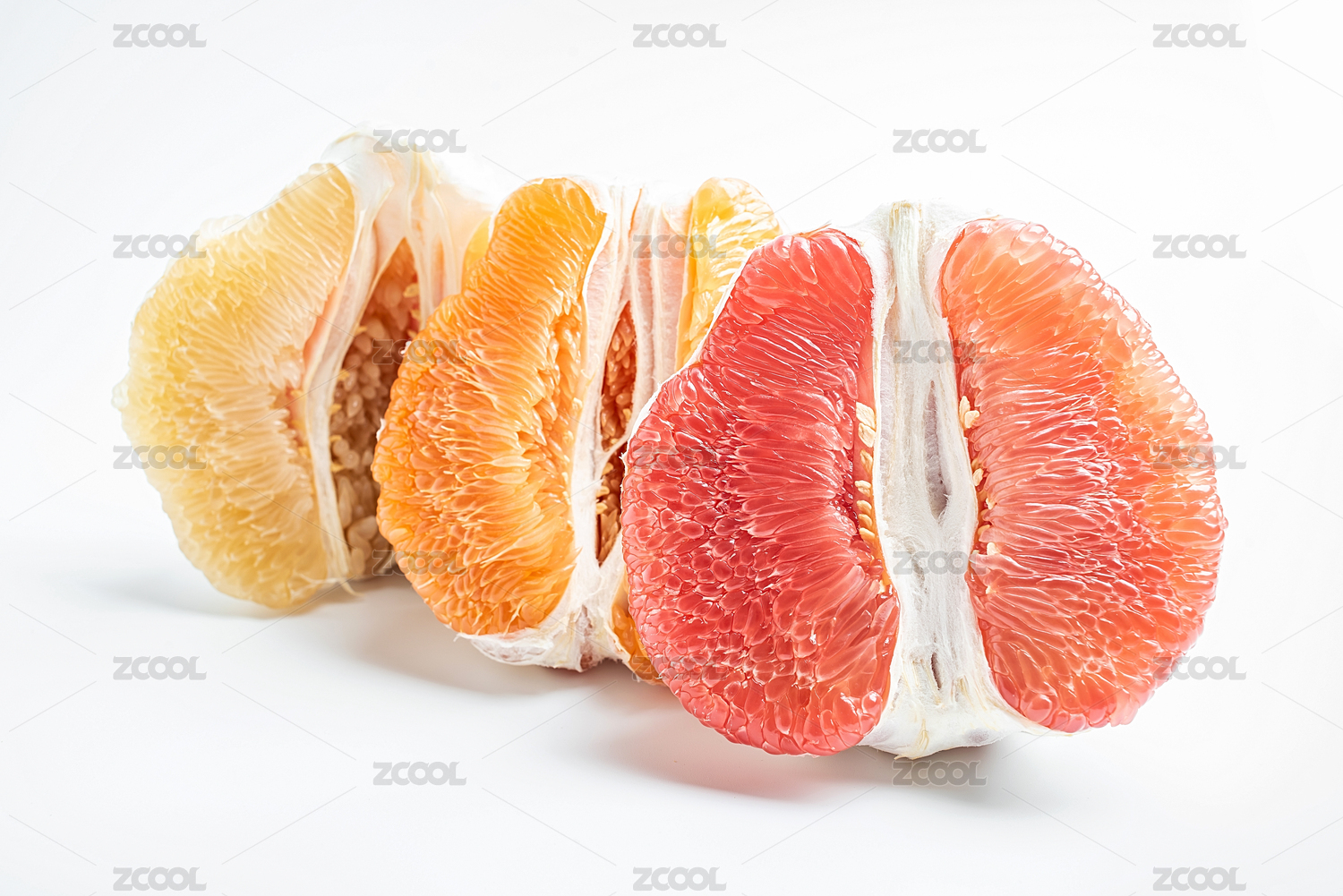 金柚子果肉在白背景上