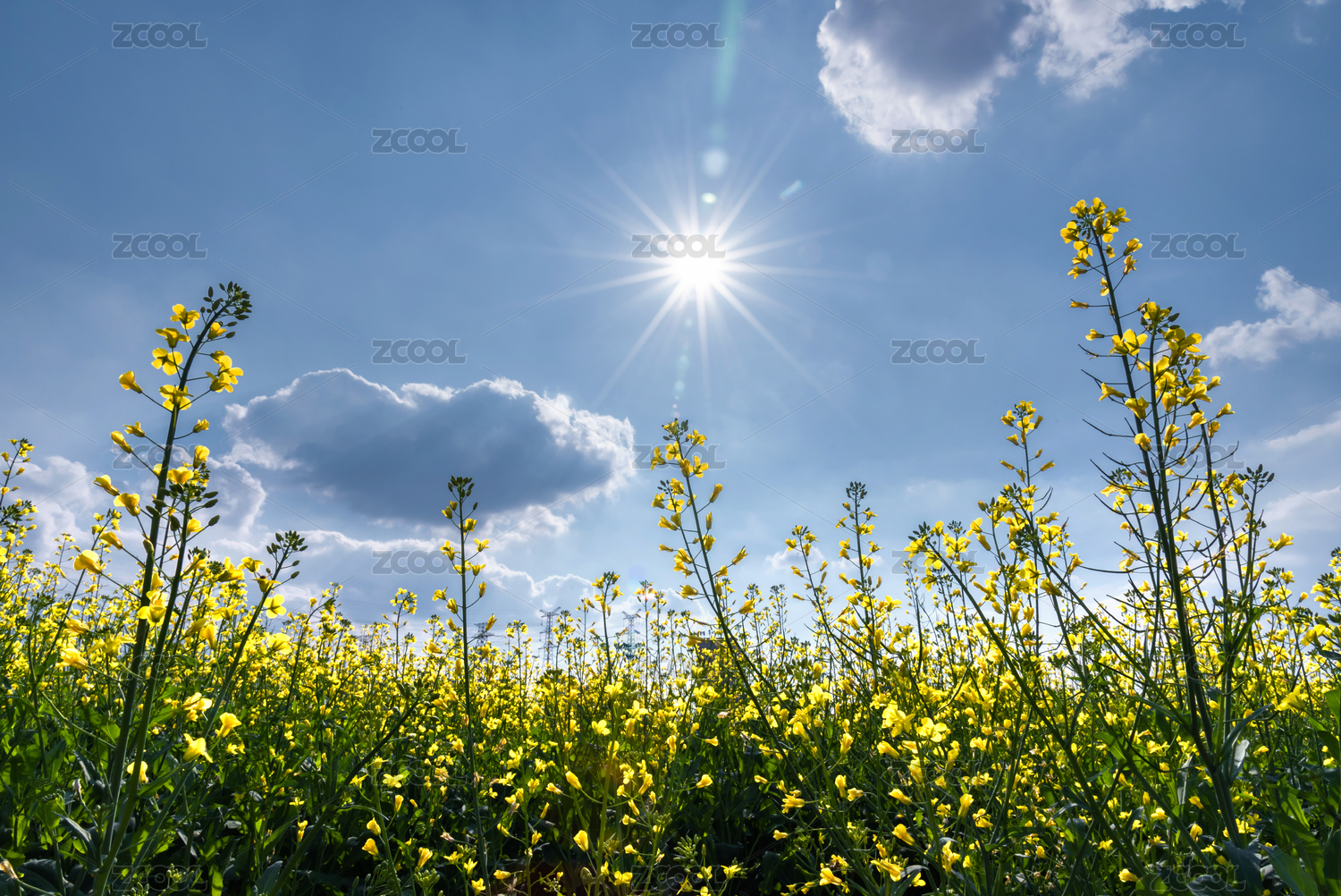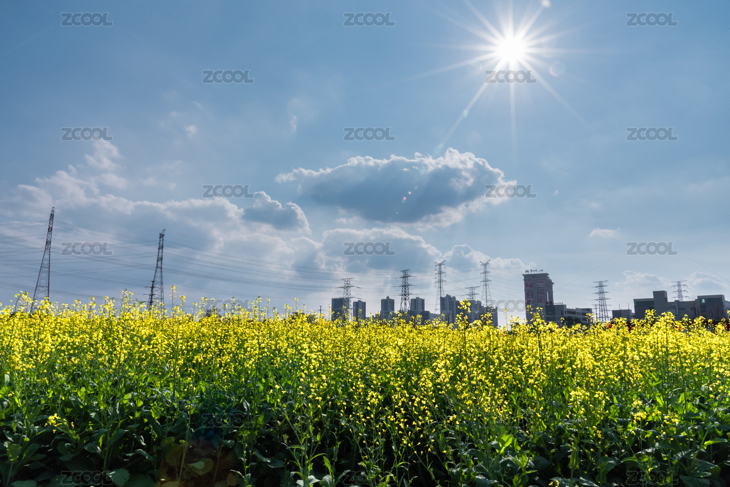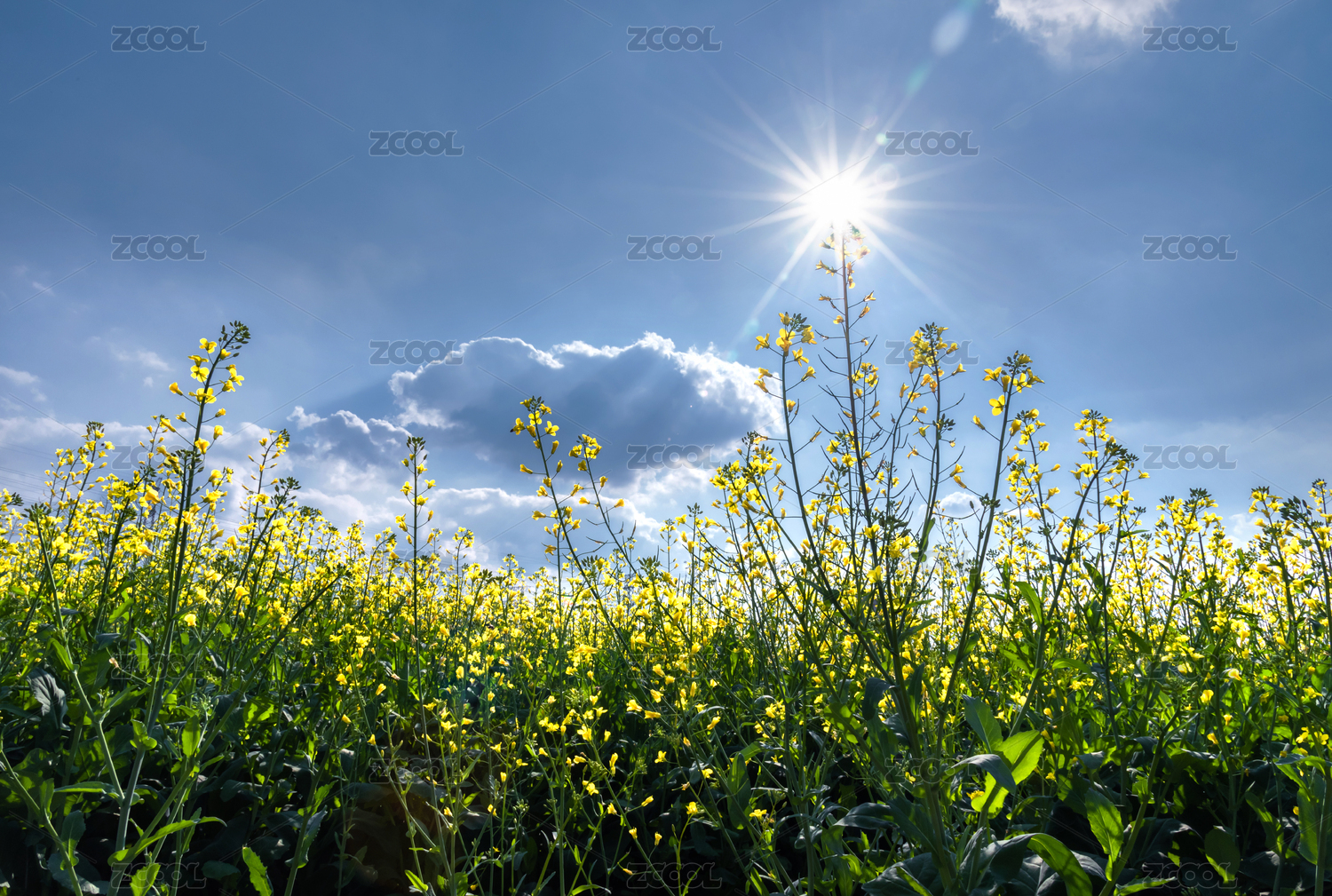 春天鄉(xiāng)村田園風(fēng)光,逆光星芒下綻放的油菜花