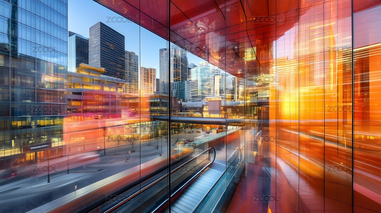 抽象插畫風商業(yè)寫字樓,城市天際線玻璃幕墻