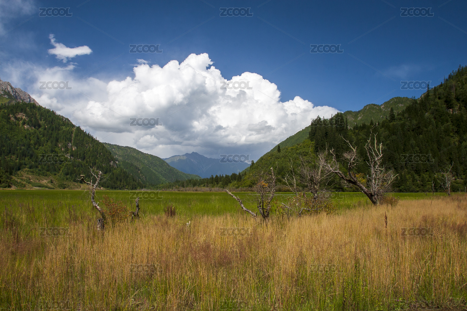 山澗的白云和草地
