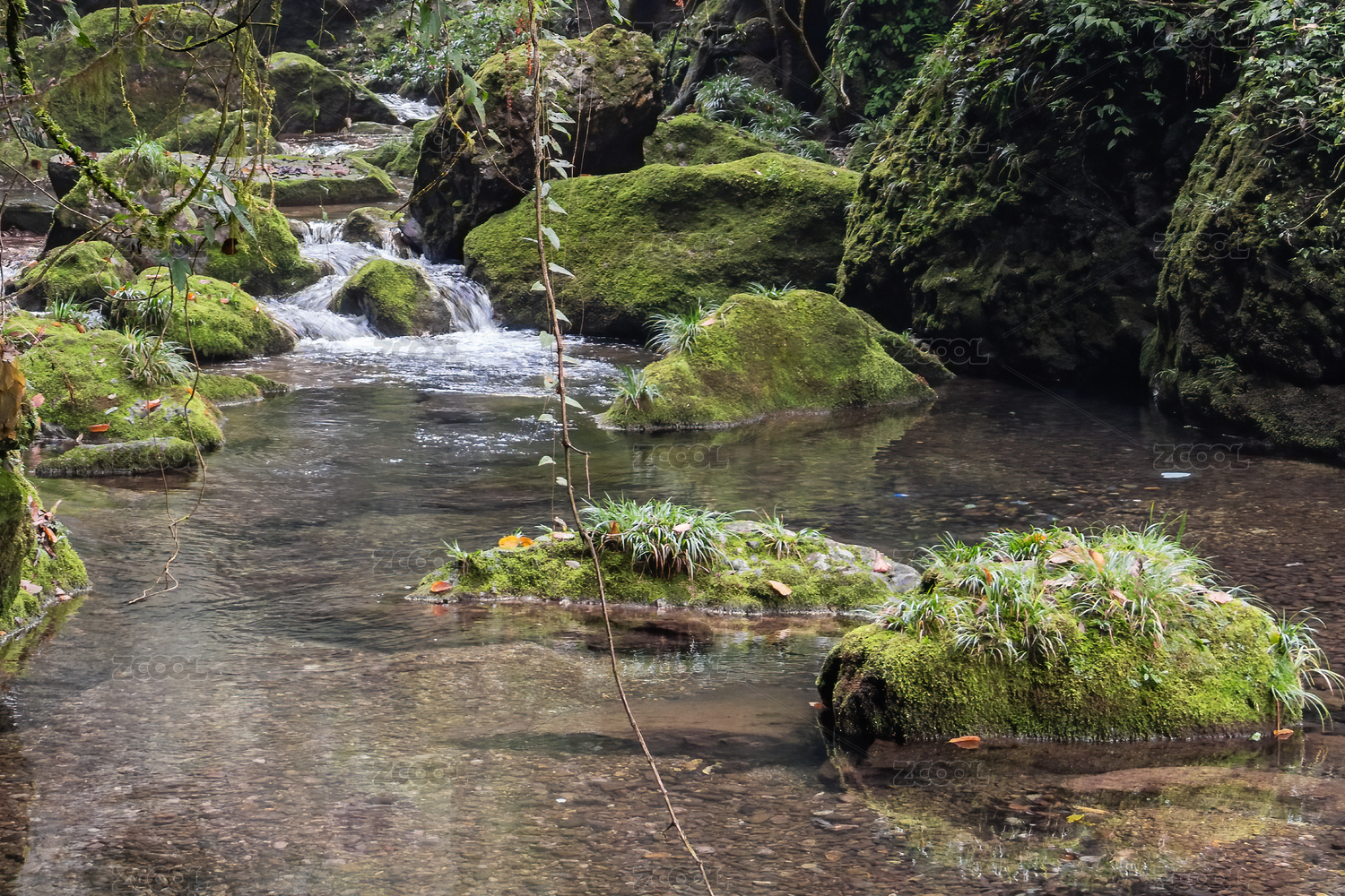 山澗清澈見底的溪流