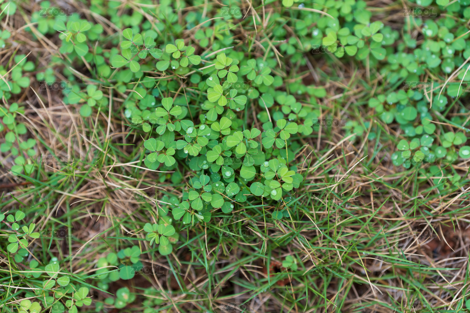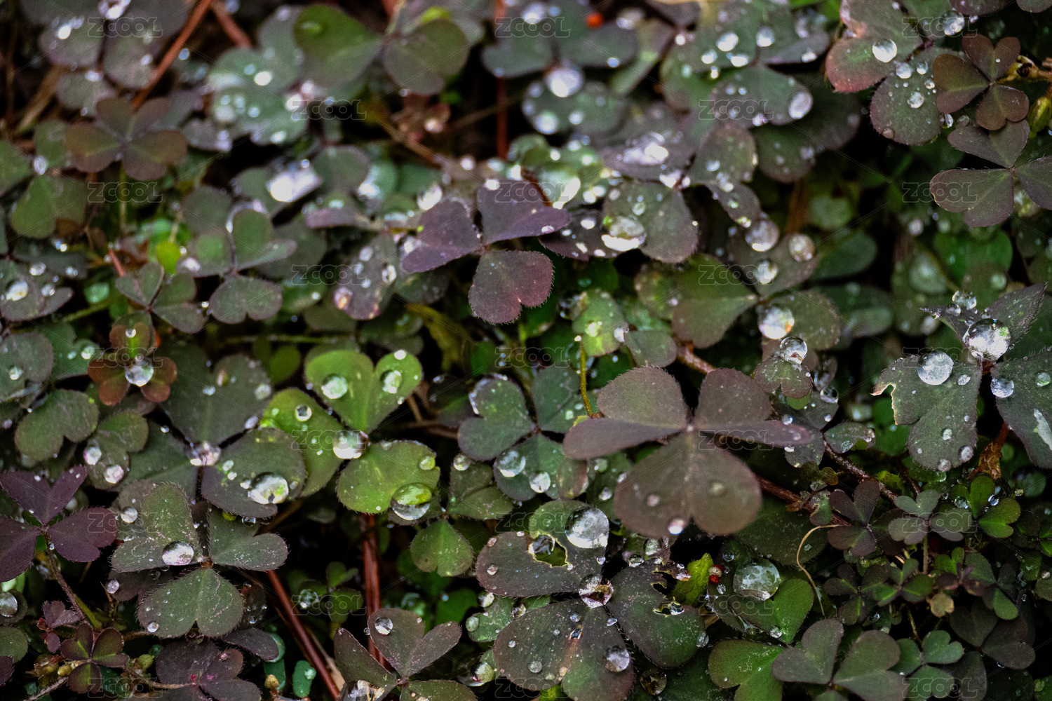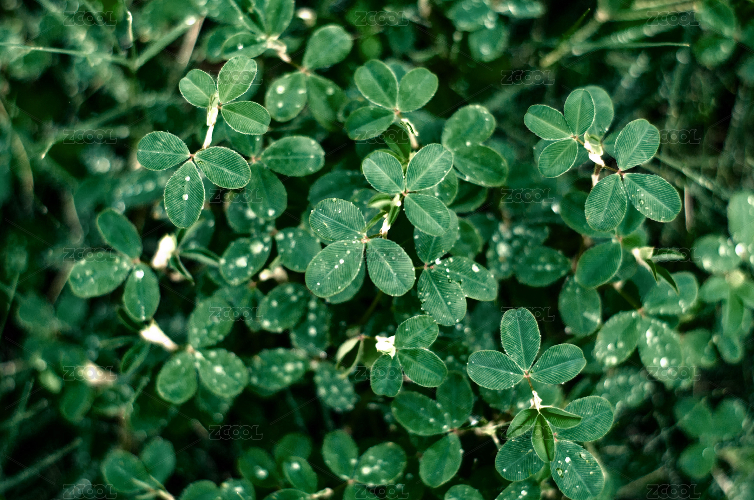 雨天時滿畫幅拍攝的三葉草背景