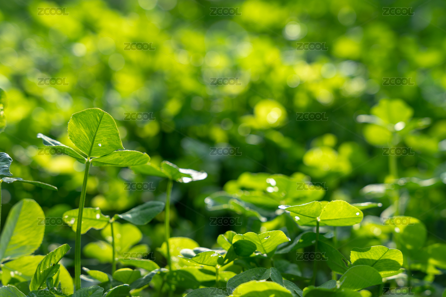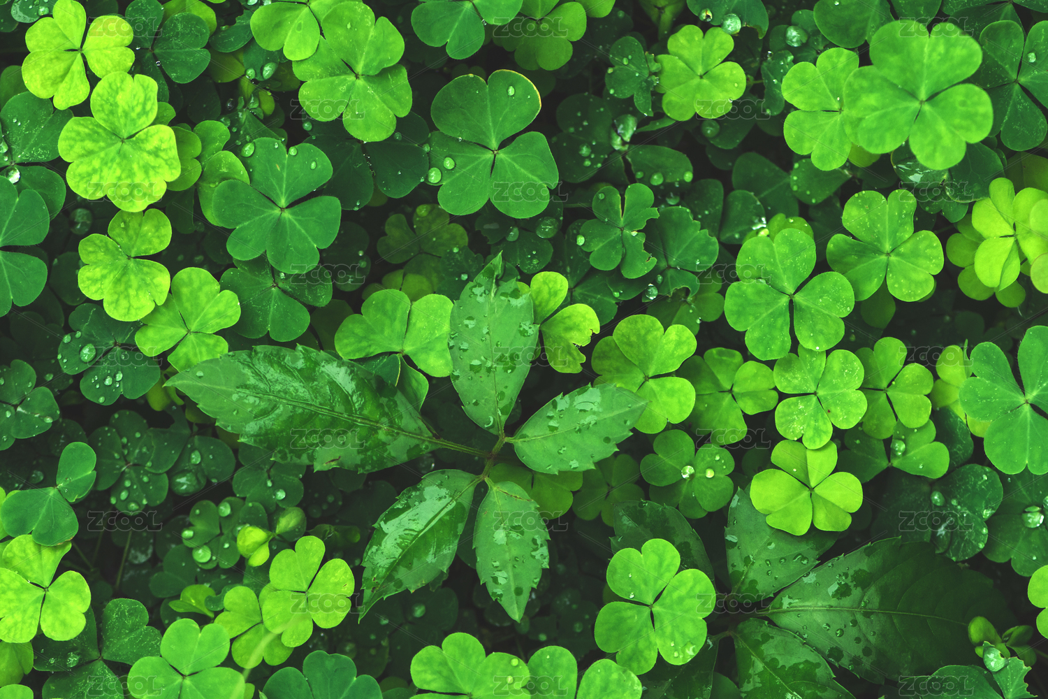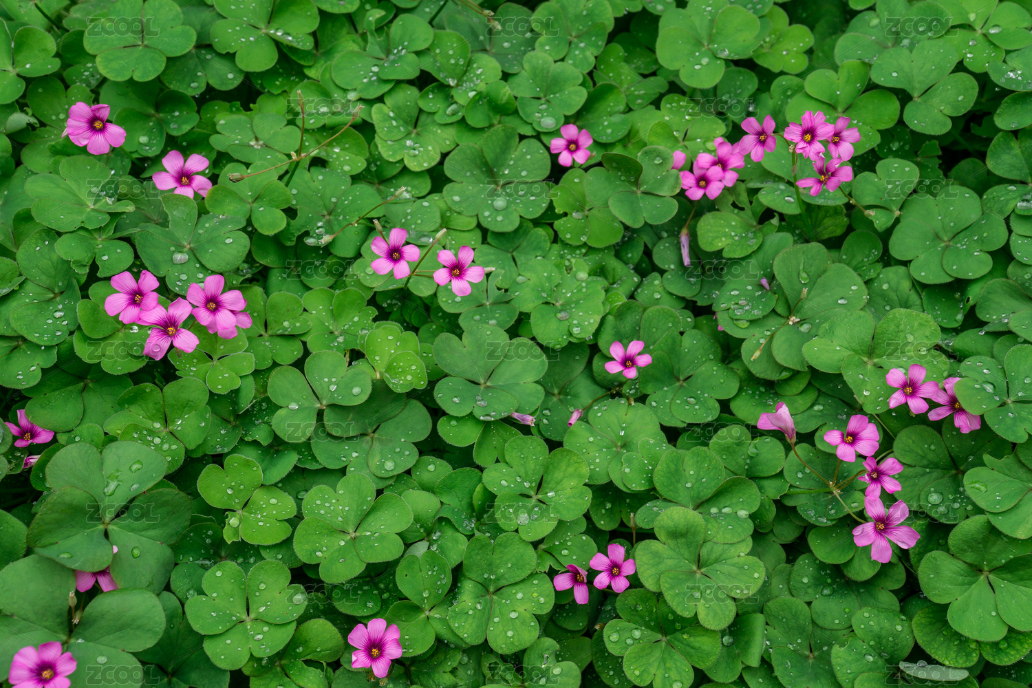 雨天時滿畫幅拍攝的三葉草背景