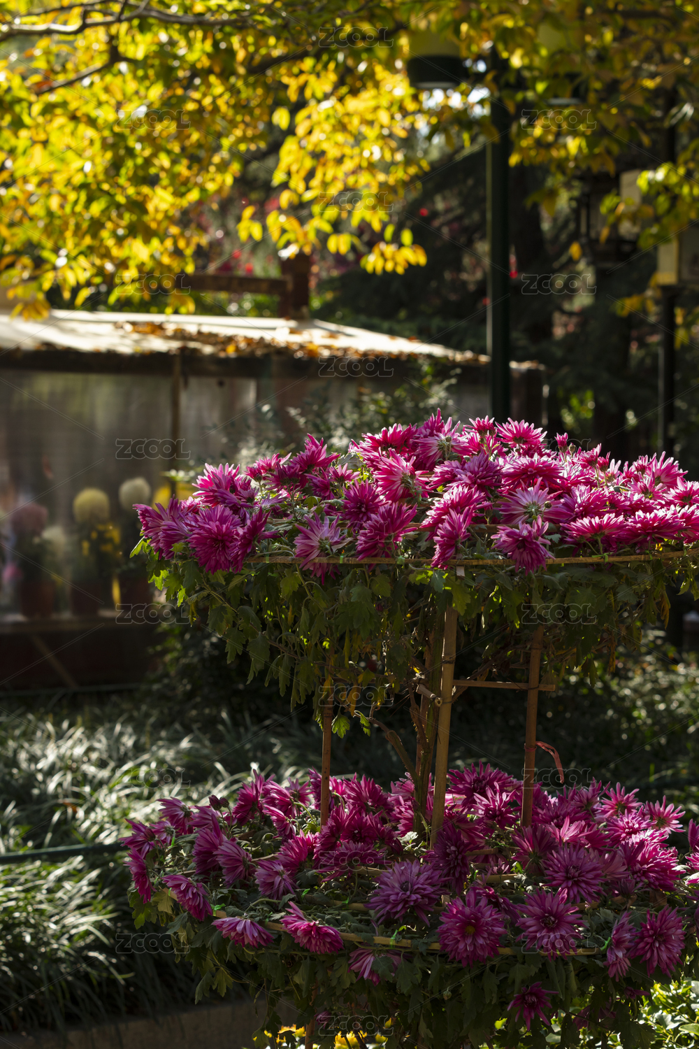 公園里姹紫嫣紅的菊花特寫