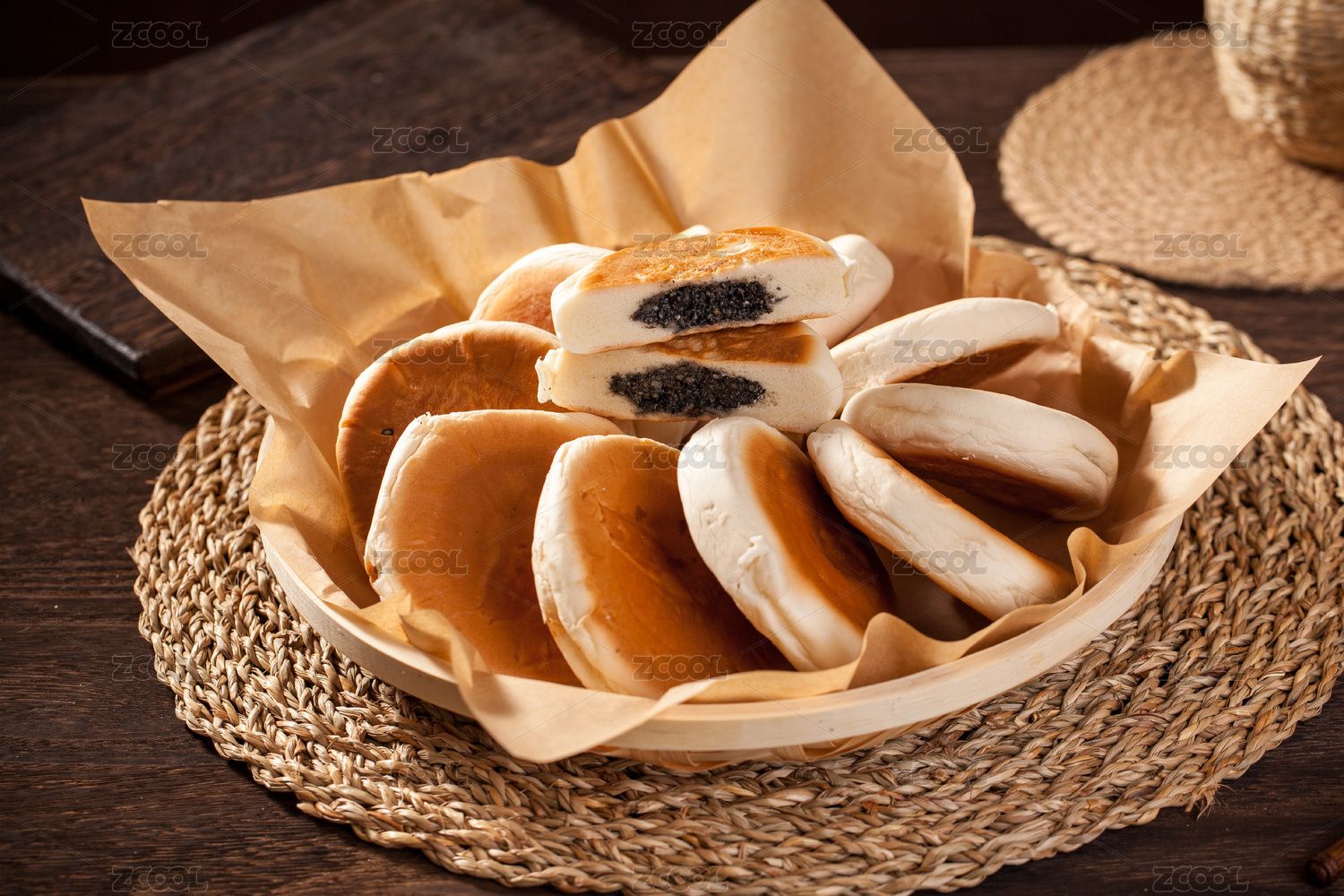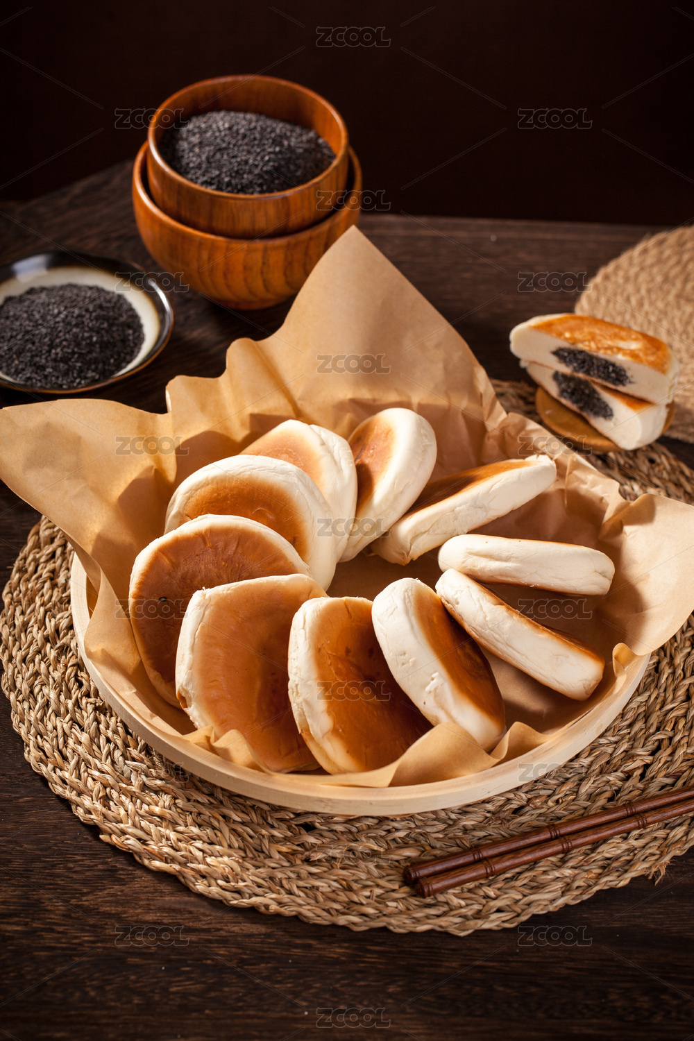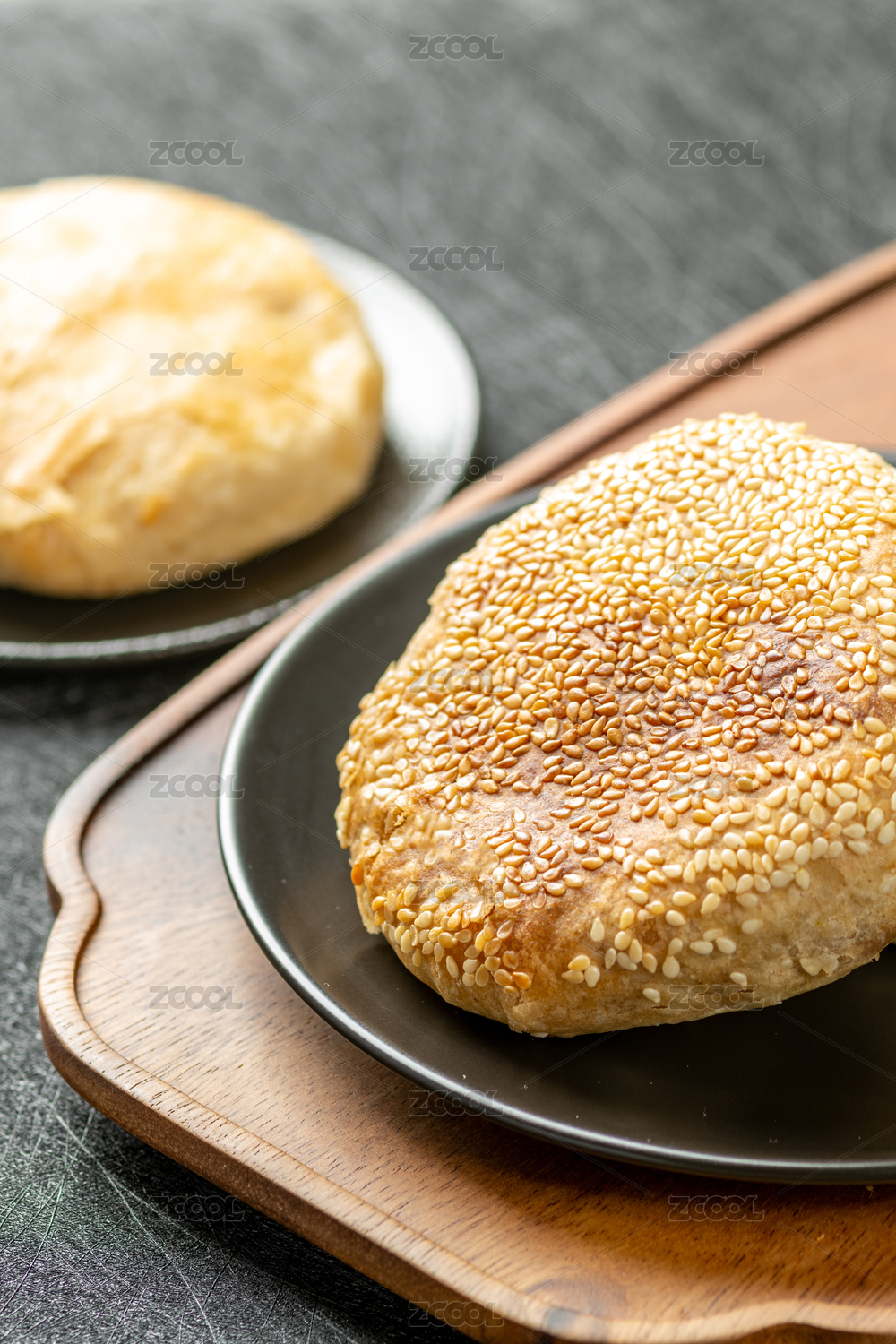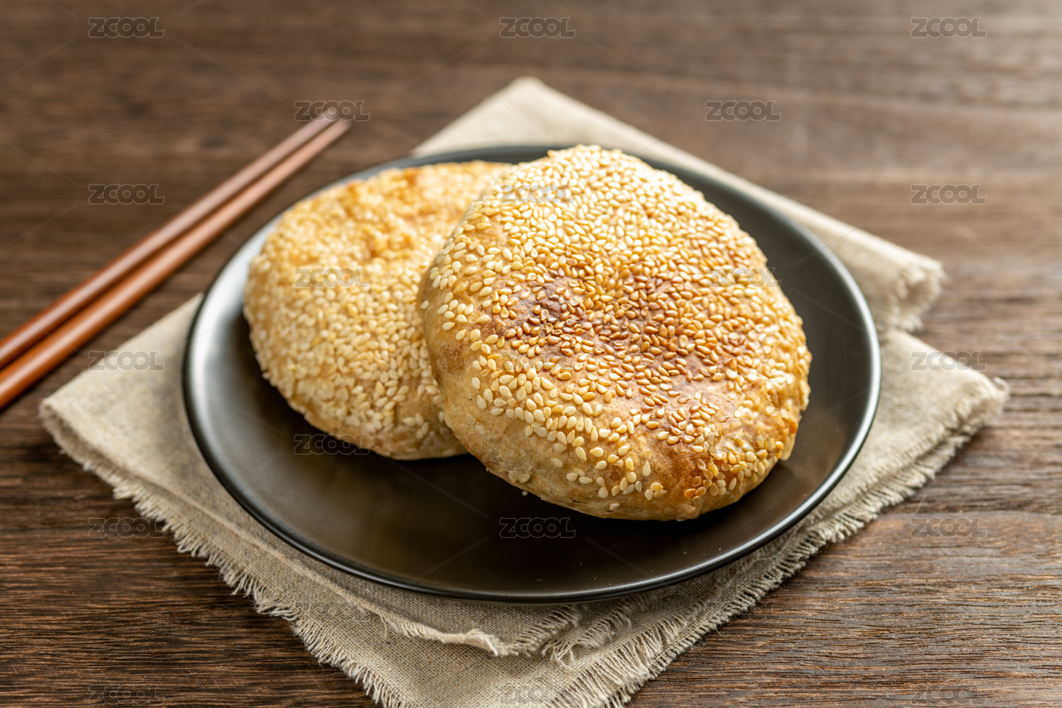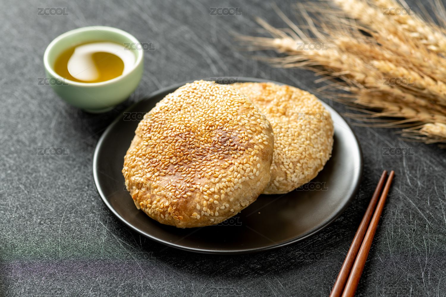 傳統(tǒng)面食芝麻燒餅特寫(xiě)黑色背景