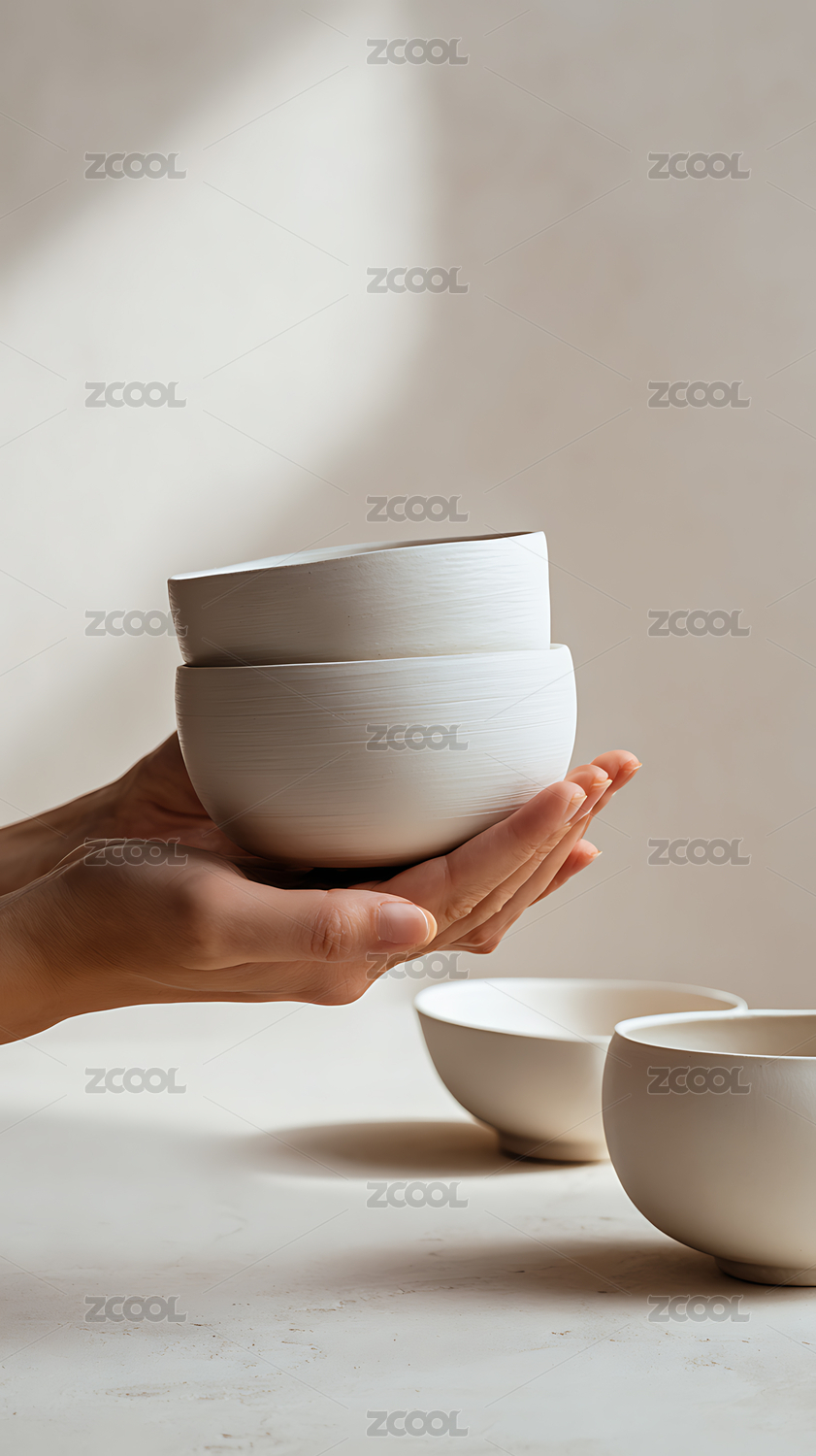 手捧碗具特寫(xiě)