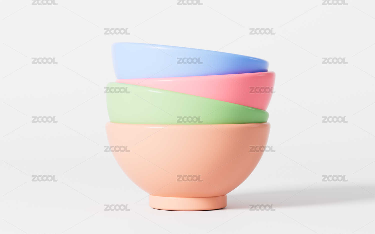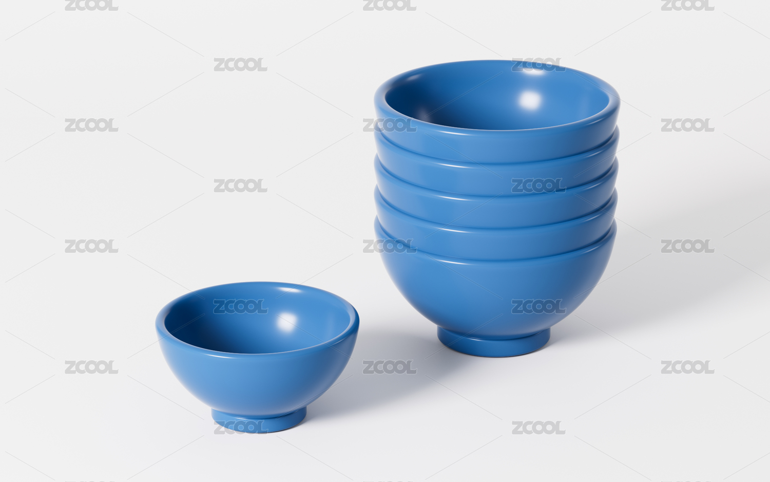 堆砌的碗具模型3D渲染
