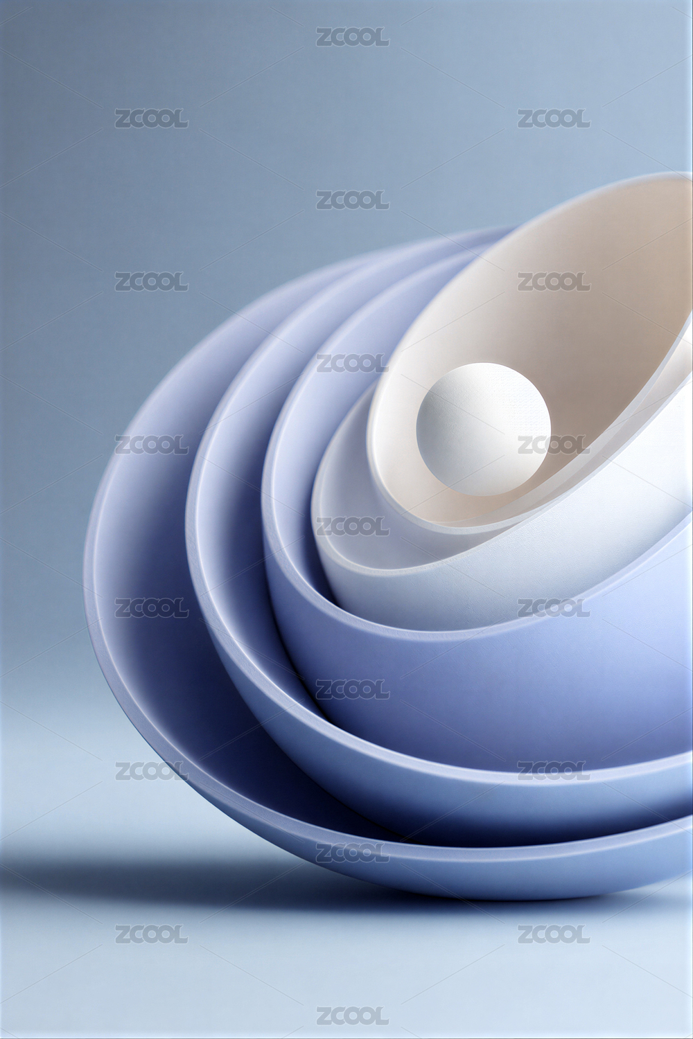 漸變藍(lán)白碗具與球體的藝術(shù)擺拍