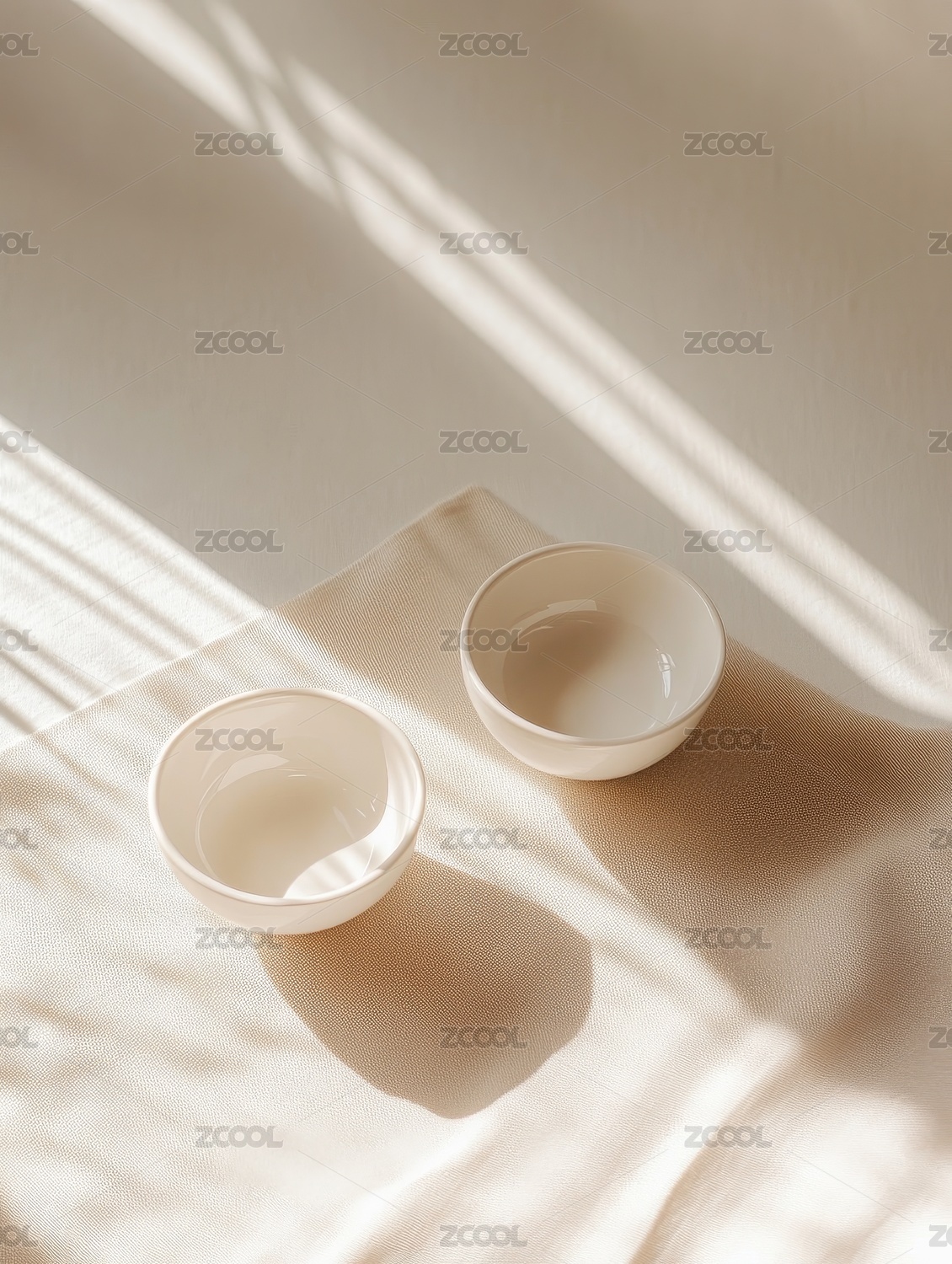 白色碗具靜置于純白背景之上