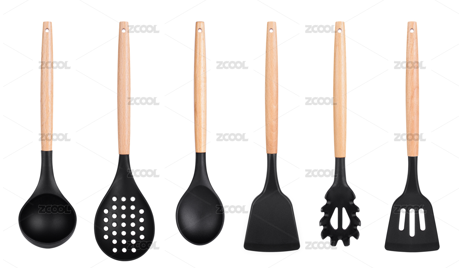 木柄硅膠鍋鏟湯勺漏勺白色背景