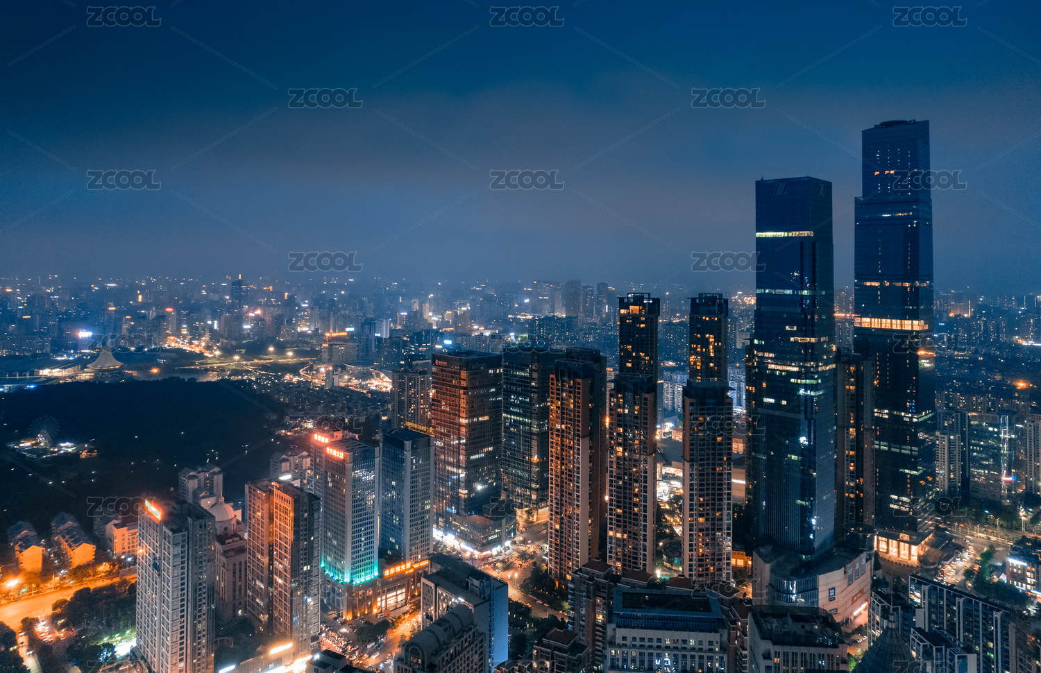 成都城市CBD全景與東湖公園
