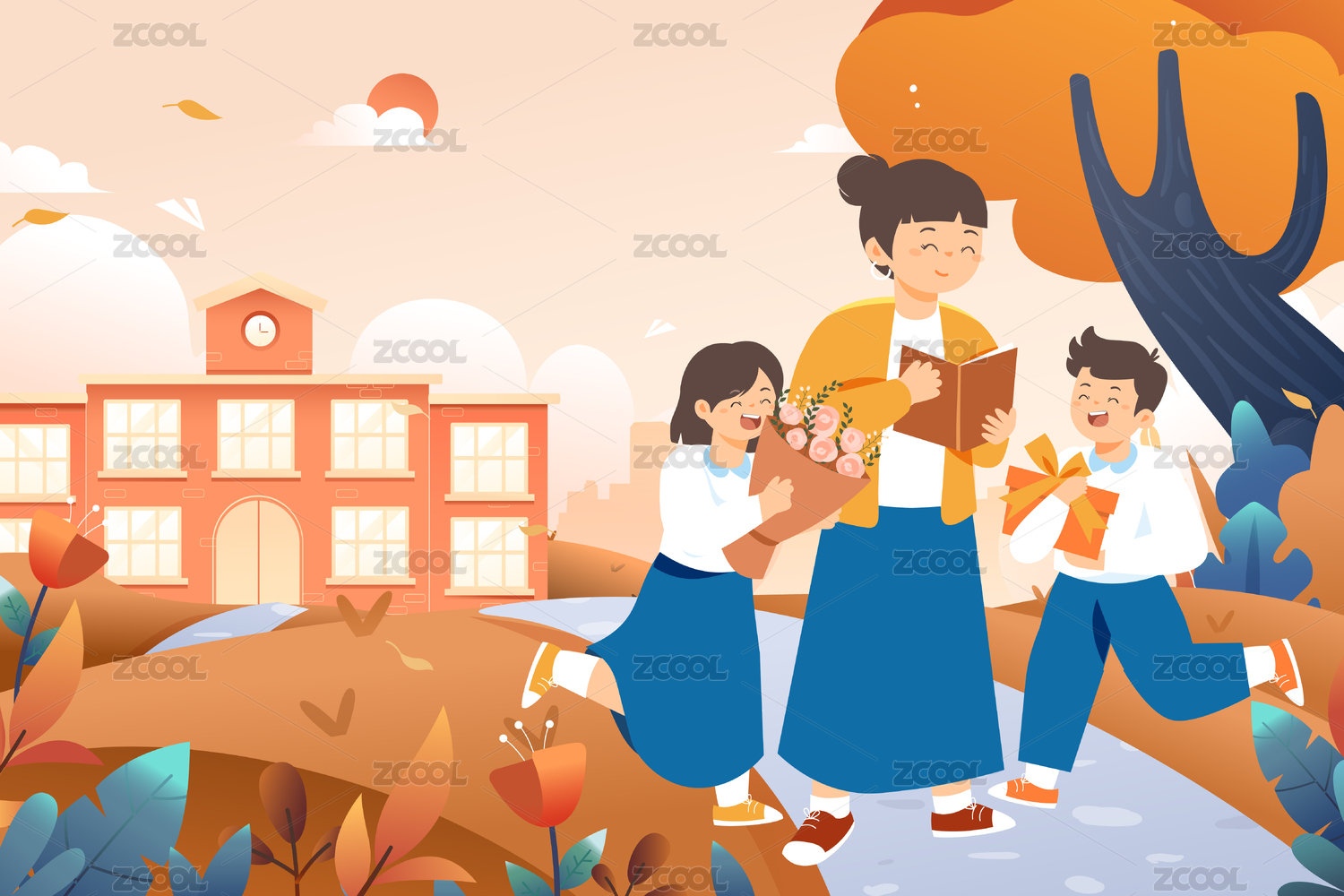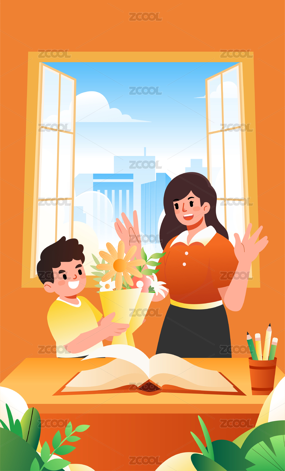 教師節(jié)指導(dǎo)學(xué)生矢量插畫