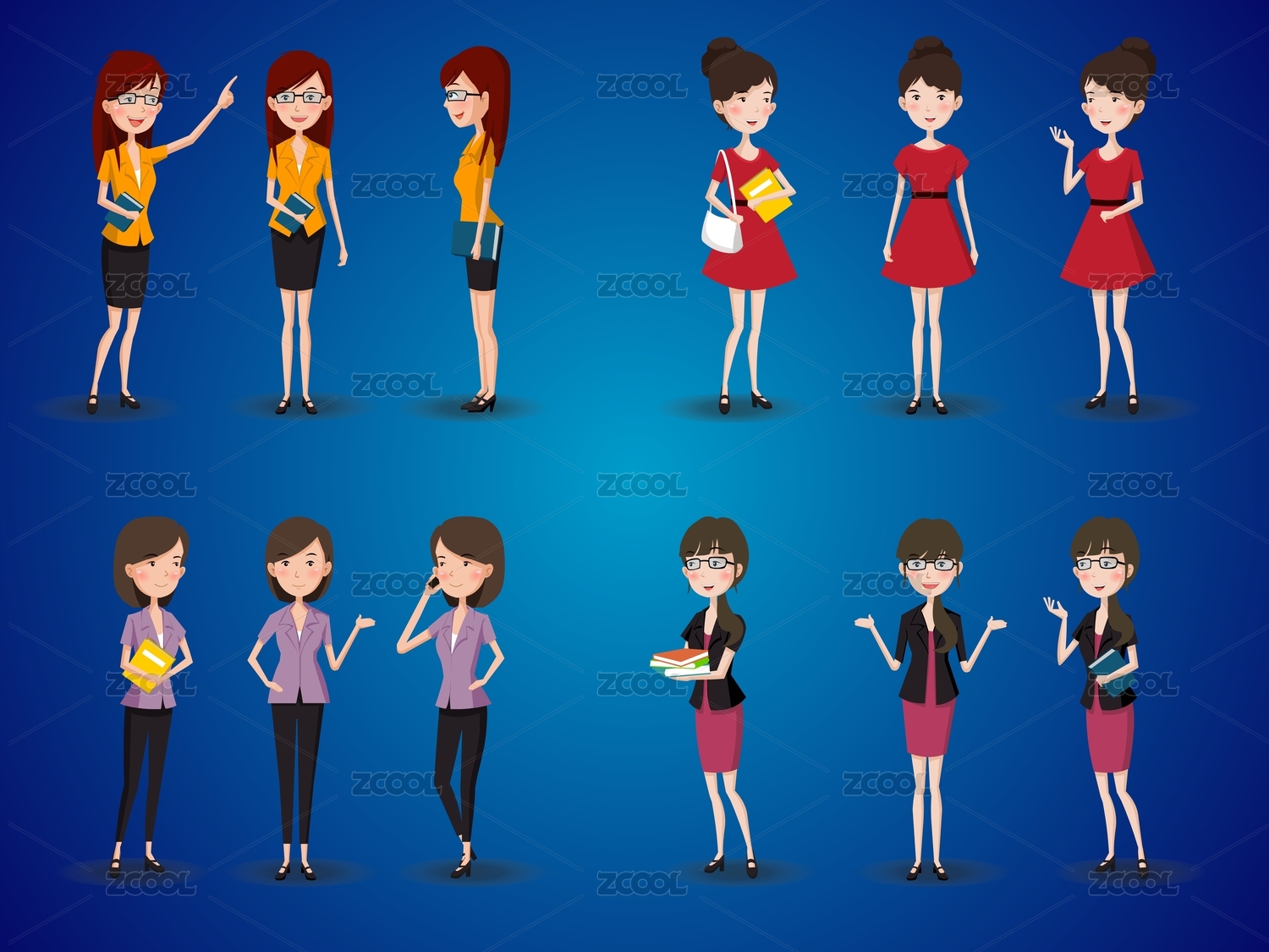 上班族女教師女文員女老板人物設(shè)計(jì)矢量圖