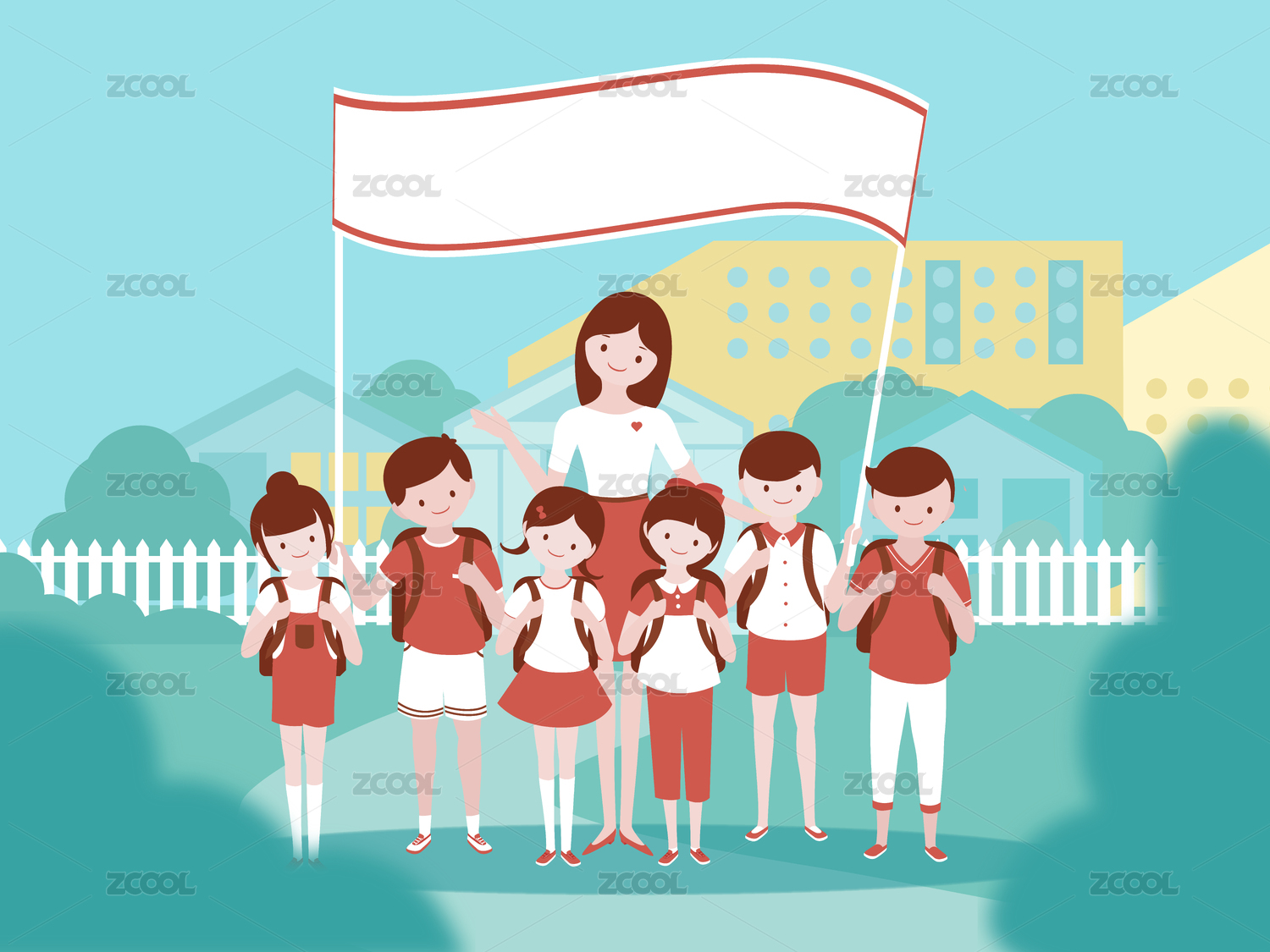 多個(gè)學(xué)生和女教師開學(xué)迎接新生矢量圖