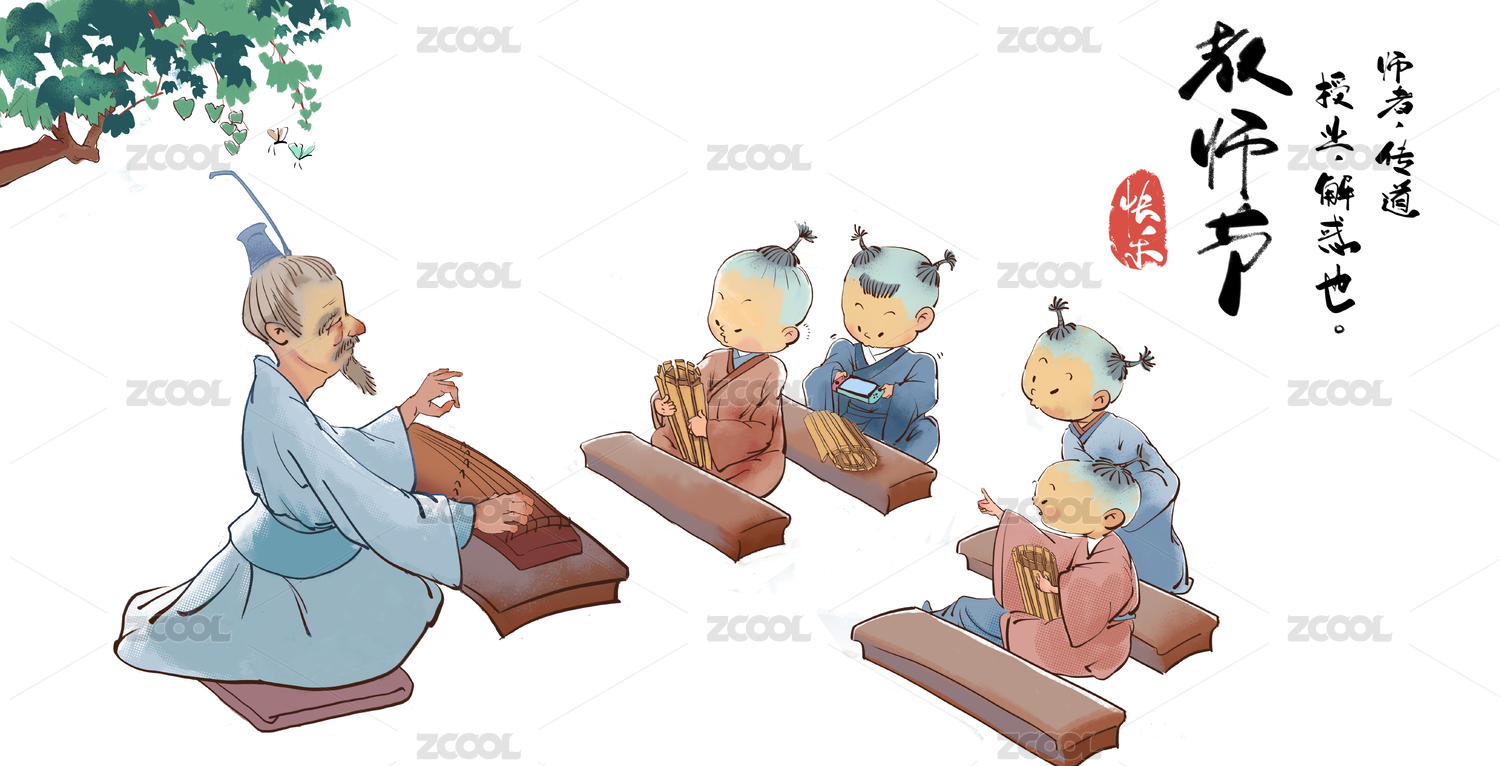 教師教授課堂淘氣學(xué)生嬉戲古風(fēng)教師節(jié)插畫
