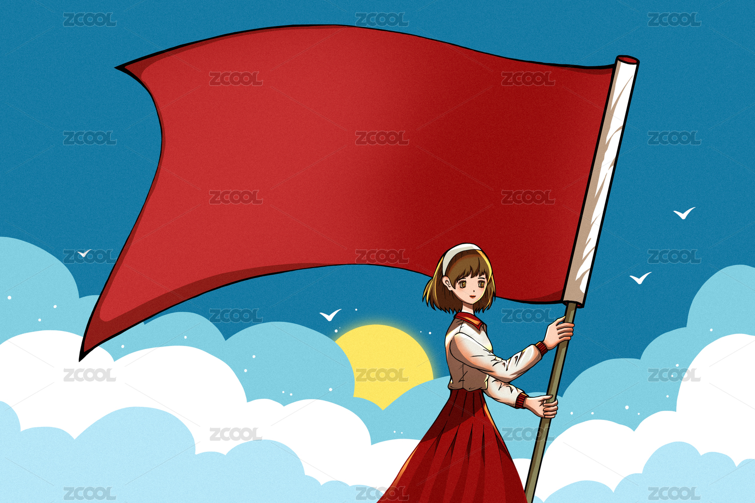 4款復(fù)古國慶革命節(jié)日飄揚的紅旗與三角旗