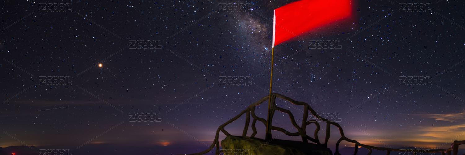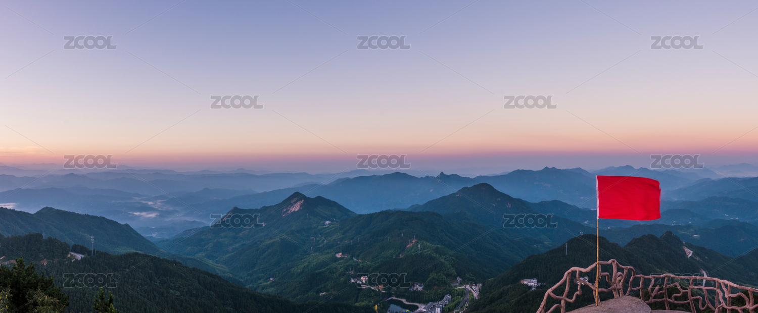 薄刀峰黎明時分迎風(fēng)招展的紅旗
