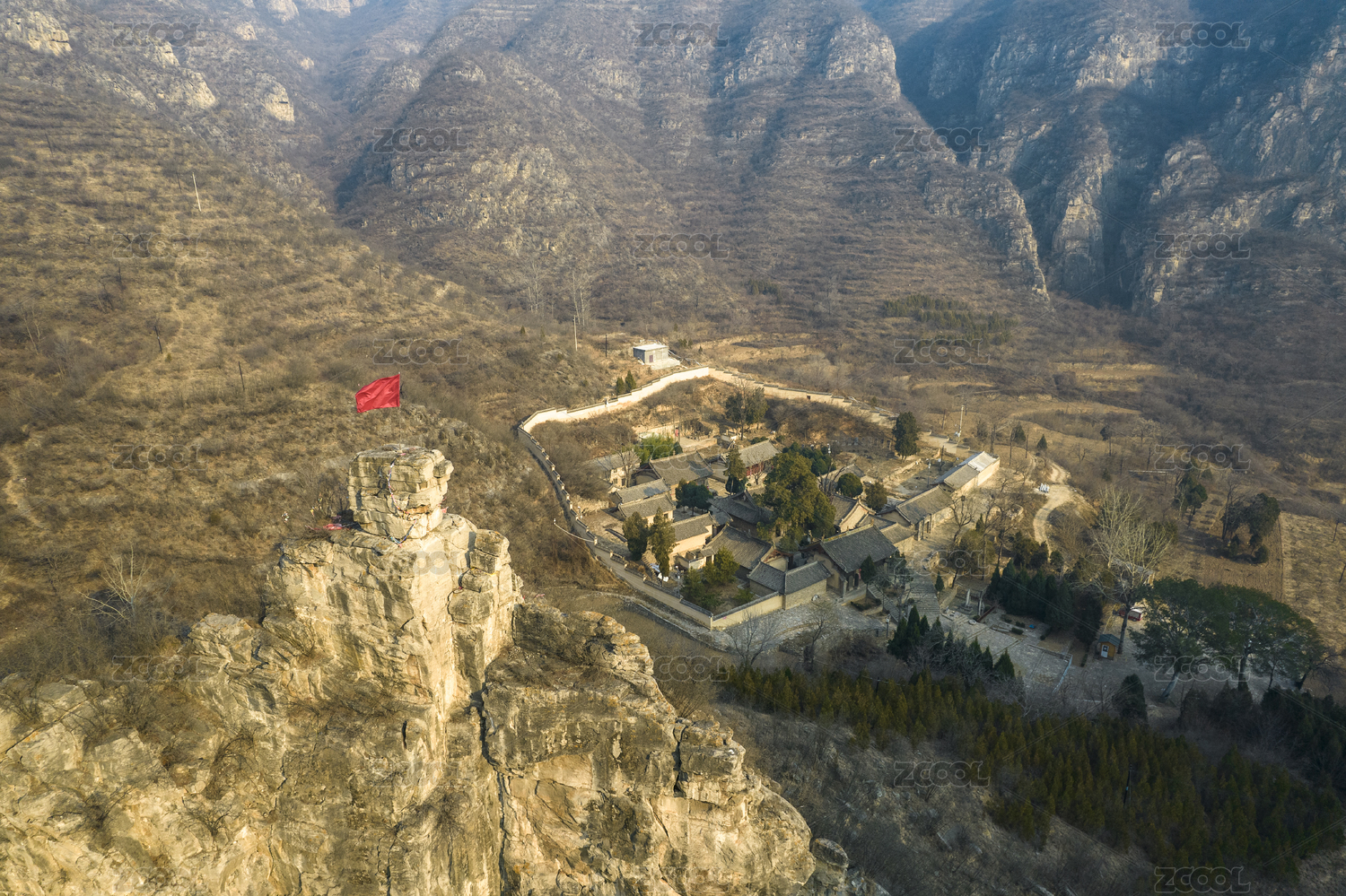 中國山西省長治市平順縣龍門寺與山頂?shù)募t旗