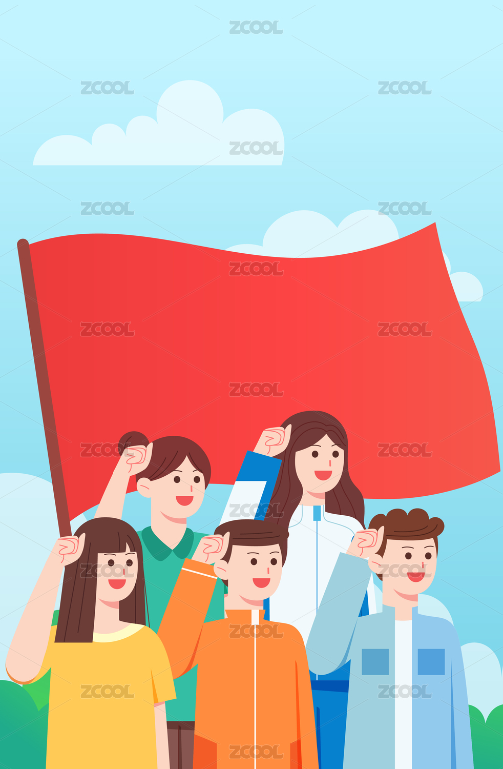 各行業(yè)青年或?qū)W生在紅旗下宣誓矢量插畫