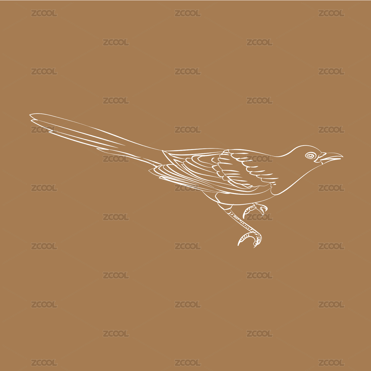 國(guó)潮七夕飛鳥(niǎo)喜鵲工筆白描矢量線稿插畫(huà)