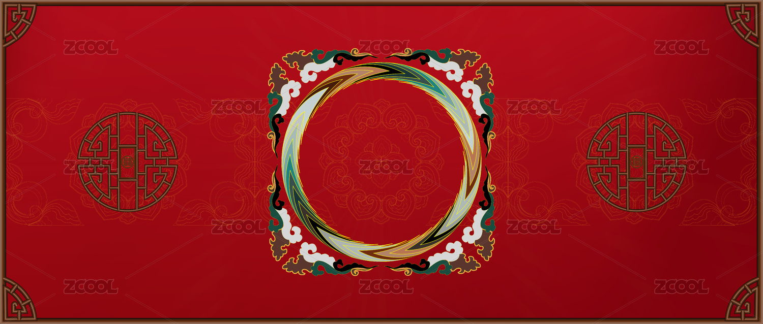 中式紅色背景過(guò)年國(guó)潮畫(huà)框窗戶舞臺(tái)展板