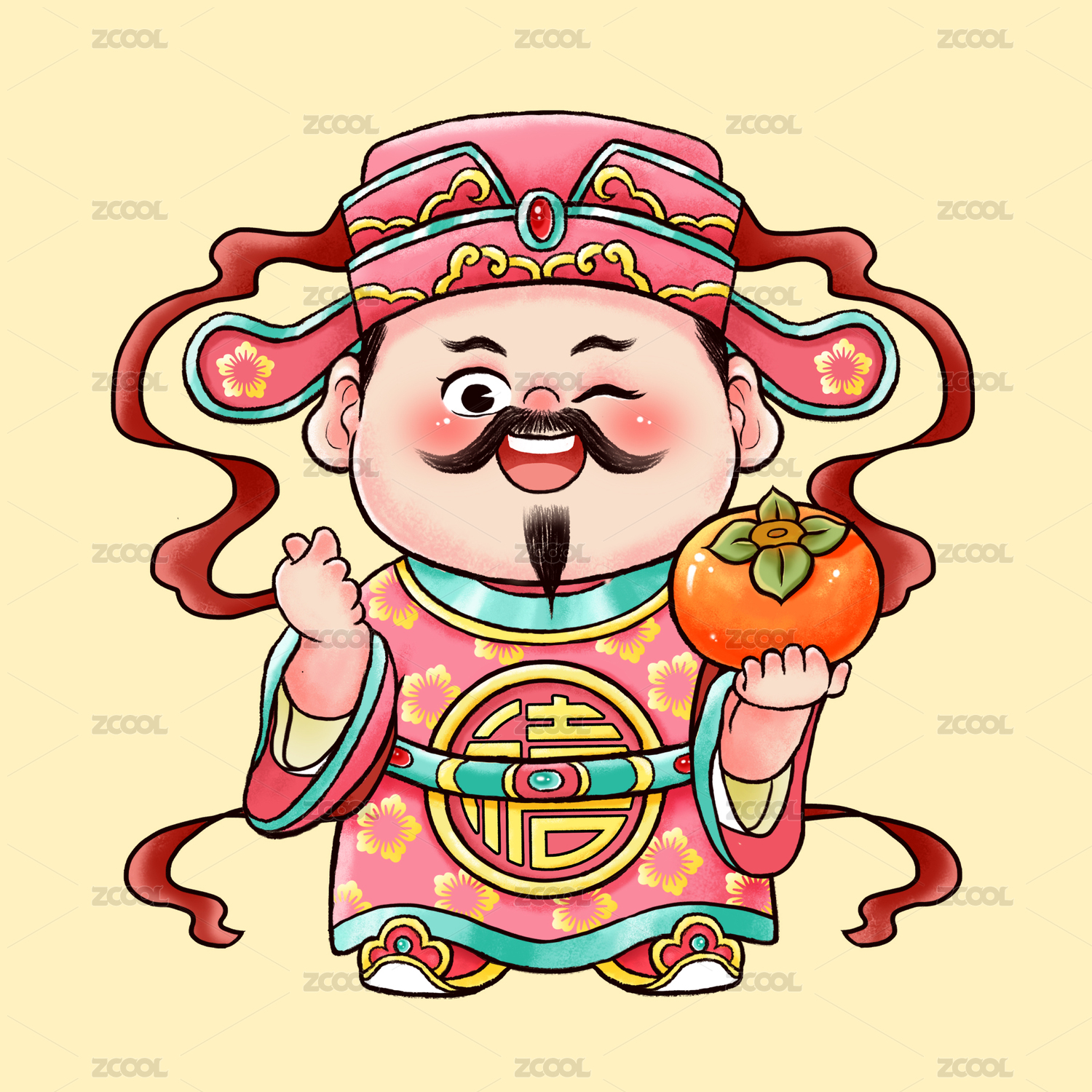 喜神手比心拿柿子-國(guó)潮畫(huà)