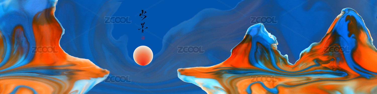 紅藍(lán)中國(guó)風(fēng)彩色水墨抽象山水國(guó)潮插畫(huà)
