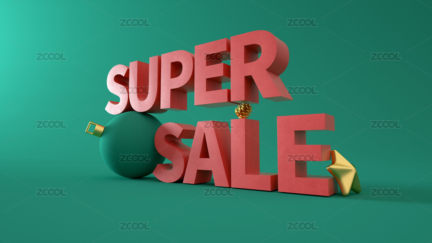 圣誕節(jié)題材的大賣super sale促銷文字,3d渲染