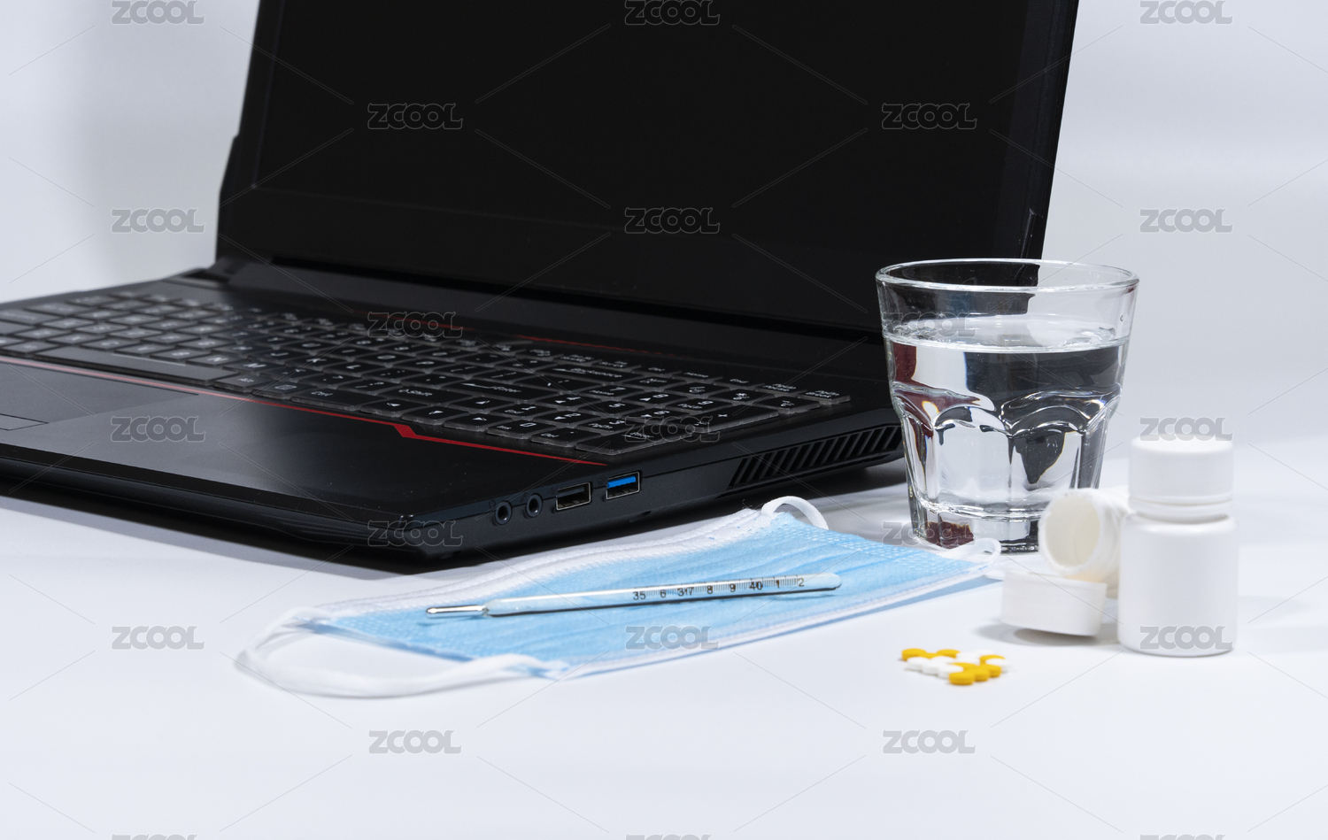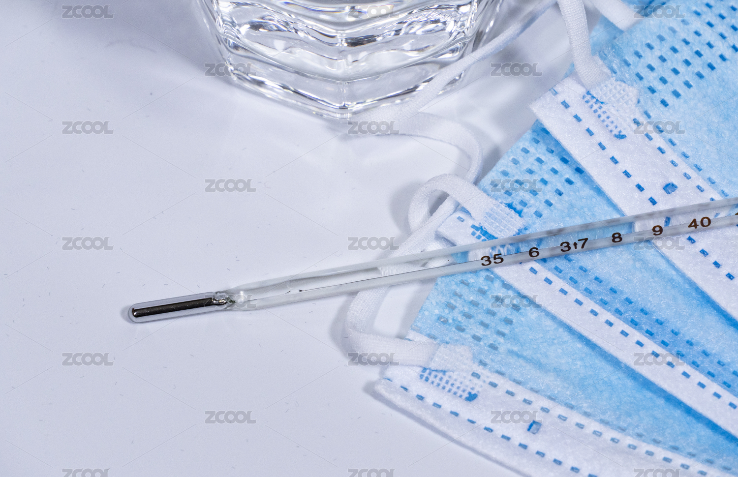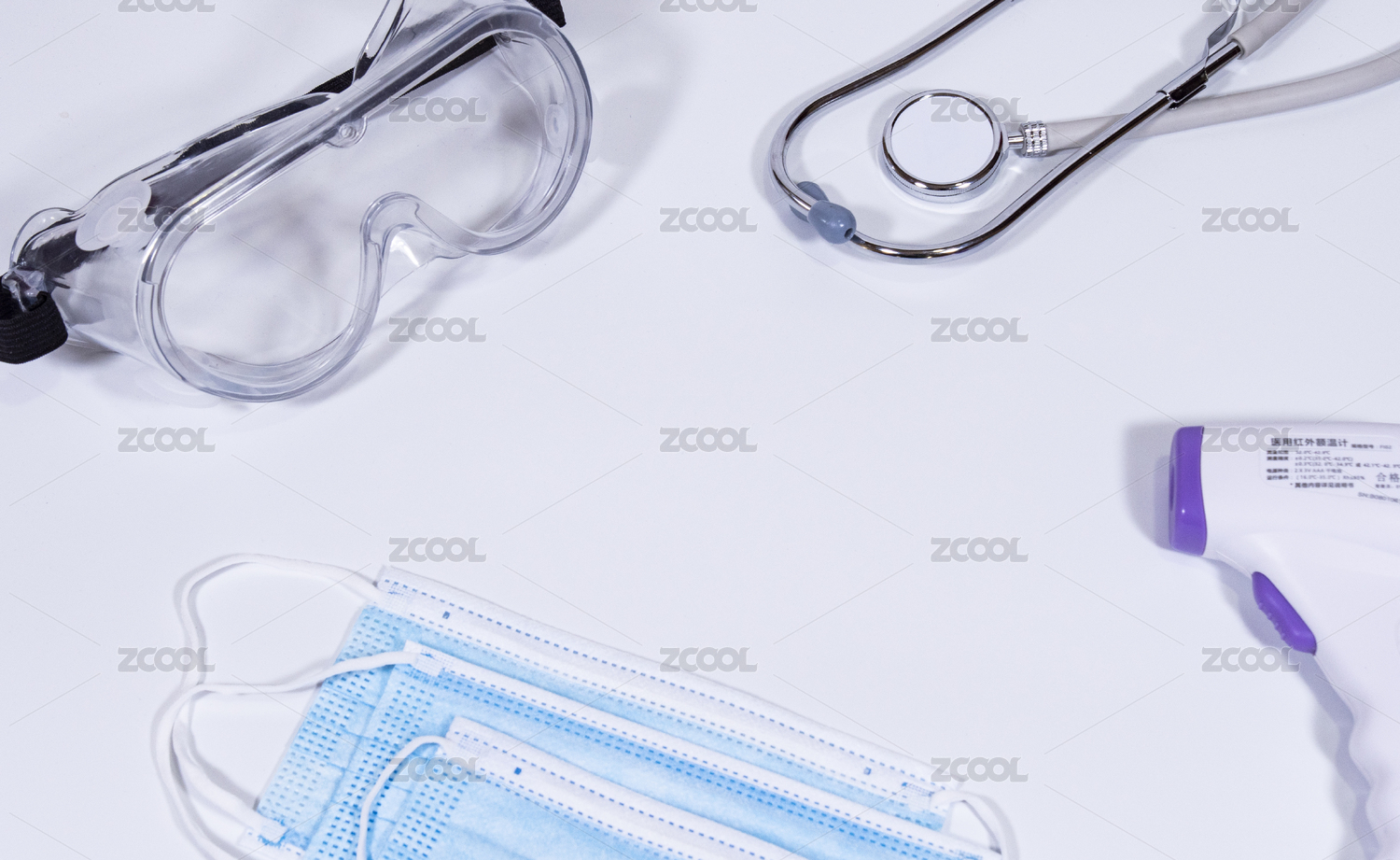 藍(lán)色醫(yī)用外科口罩,白色背景