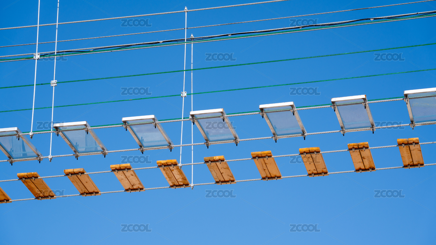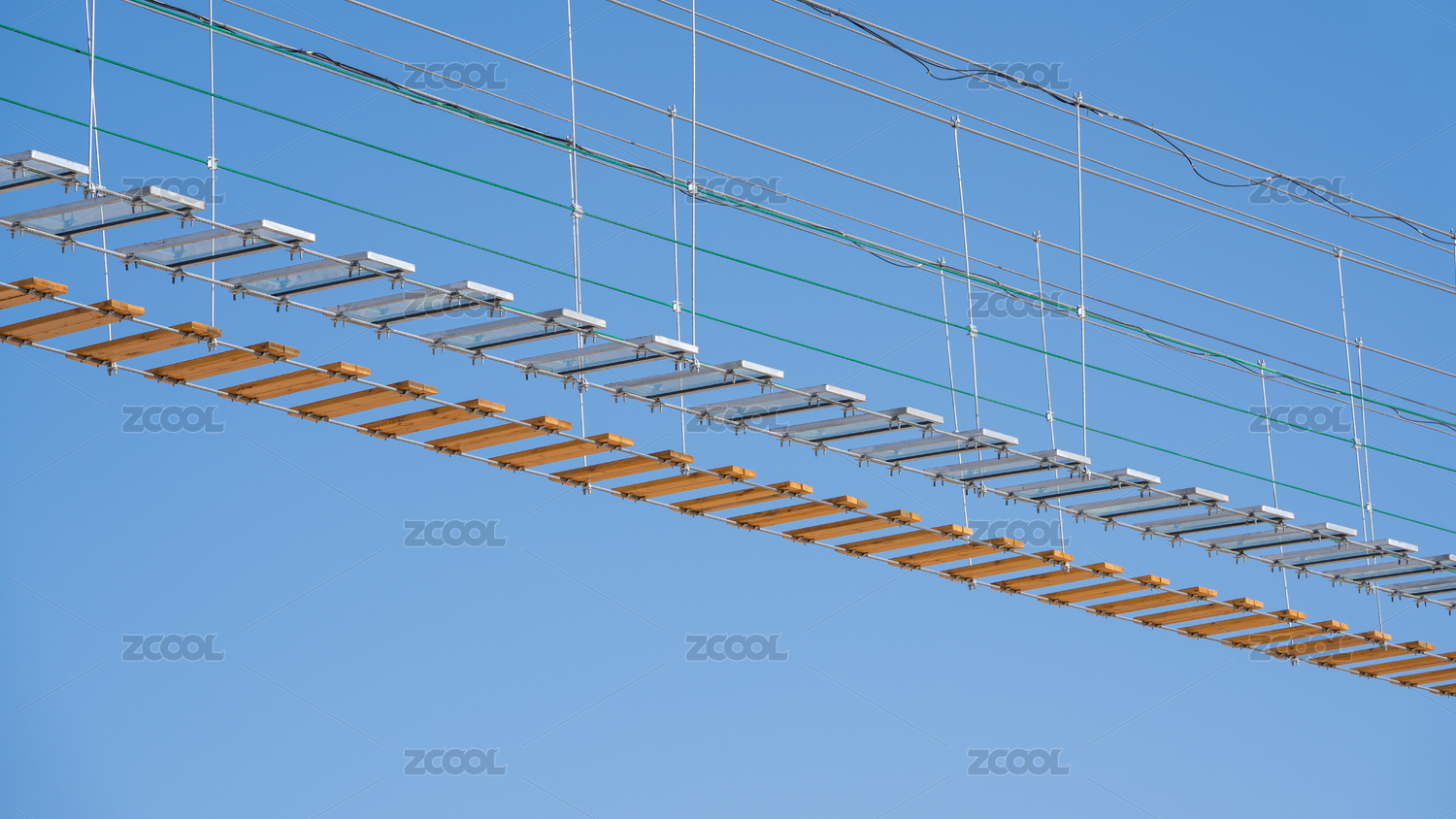 藍天背景下的高空棧道特寫