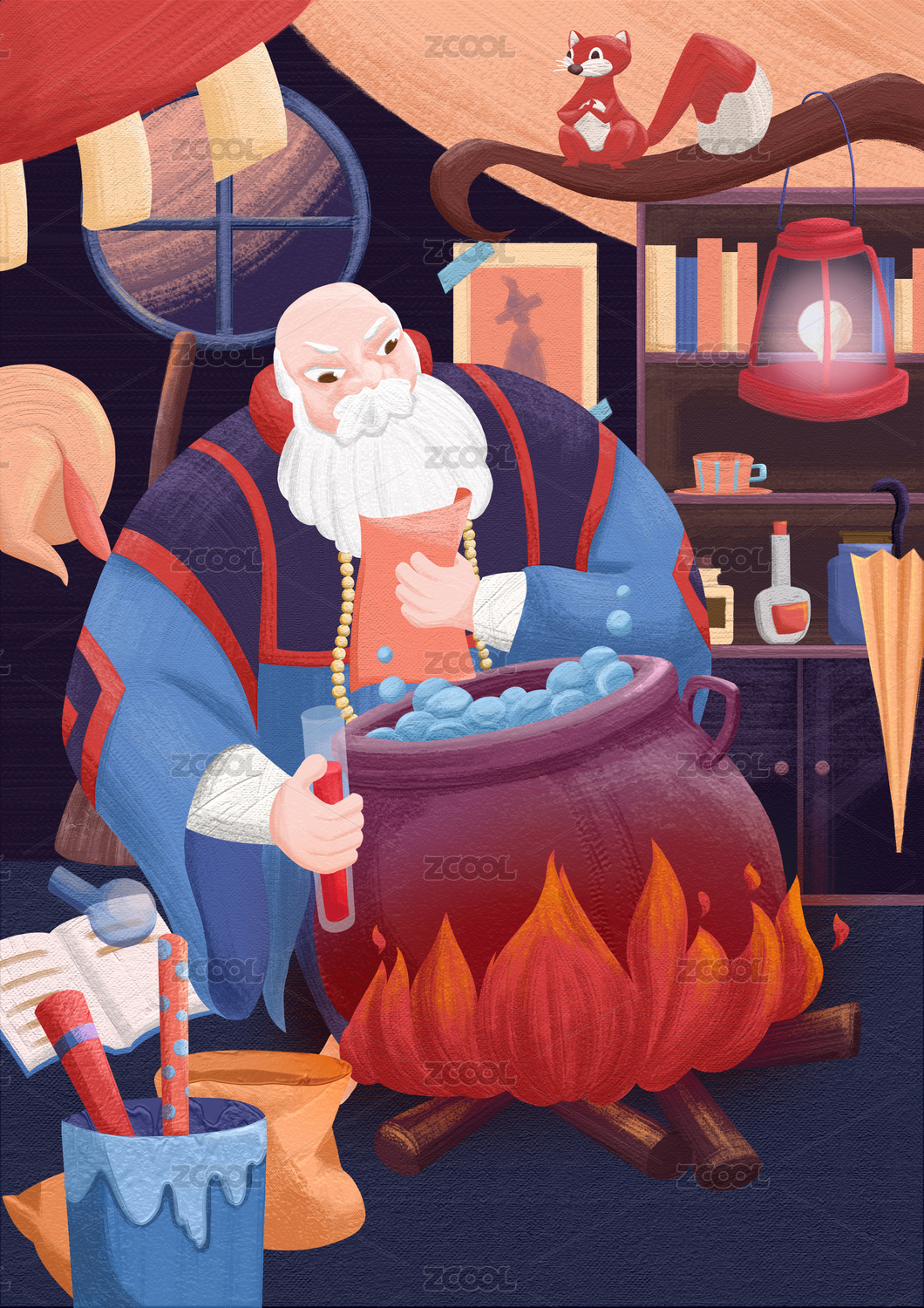 西方魔幻魔法巫師智者插畫