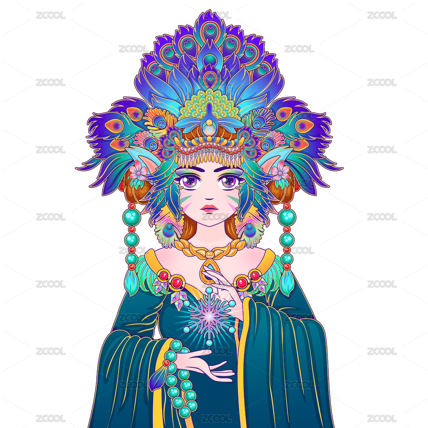 卡通二次元星座花神雪花孔雀裝扮的復(fù)古少女